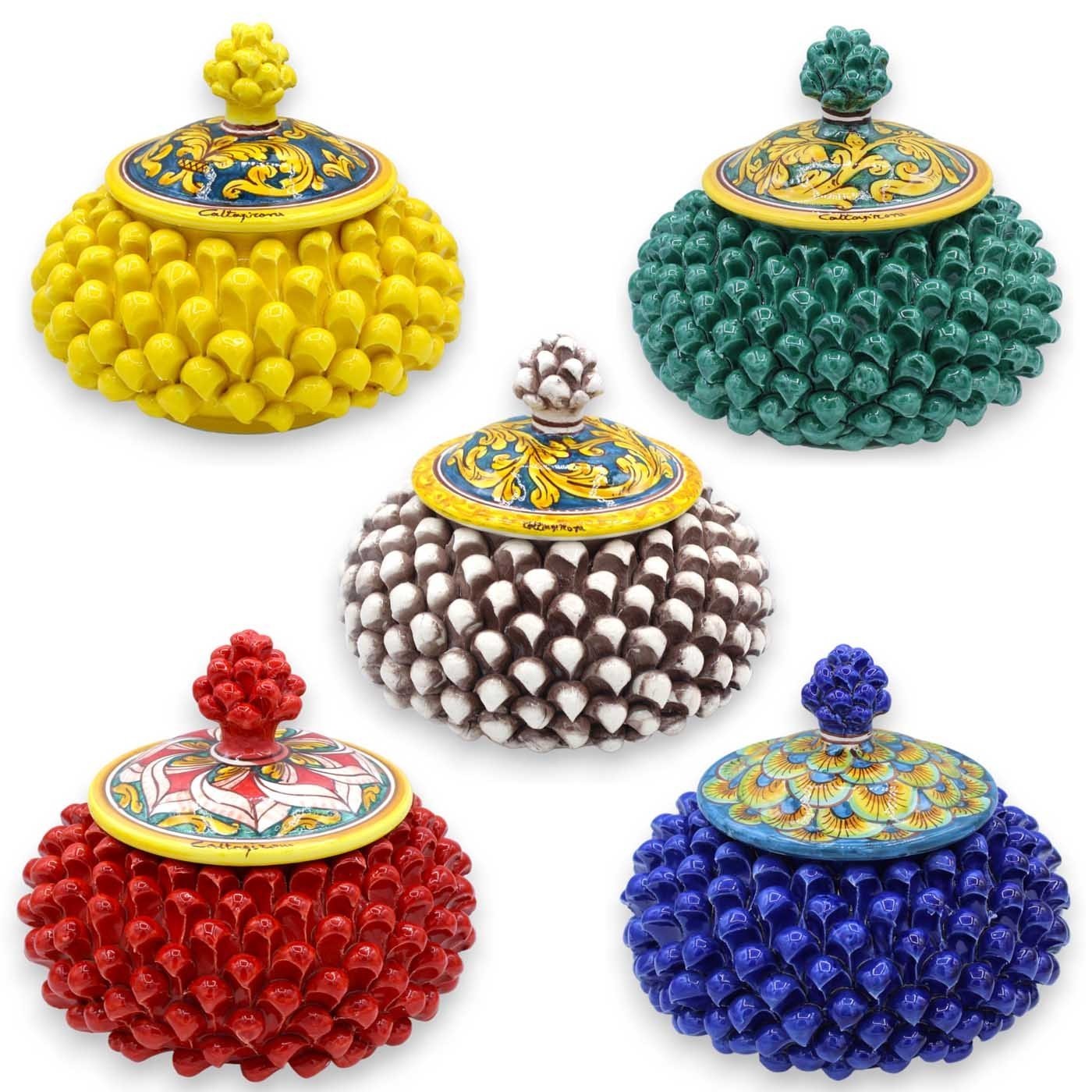 Keksdose oder Schmuckkästchen aus sizilianischer Kiefernzapfenkeramik, vollständig sorgfältig von unseren Handwerksmeistern handgefertigt.