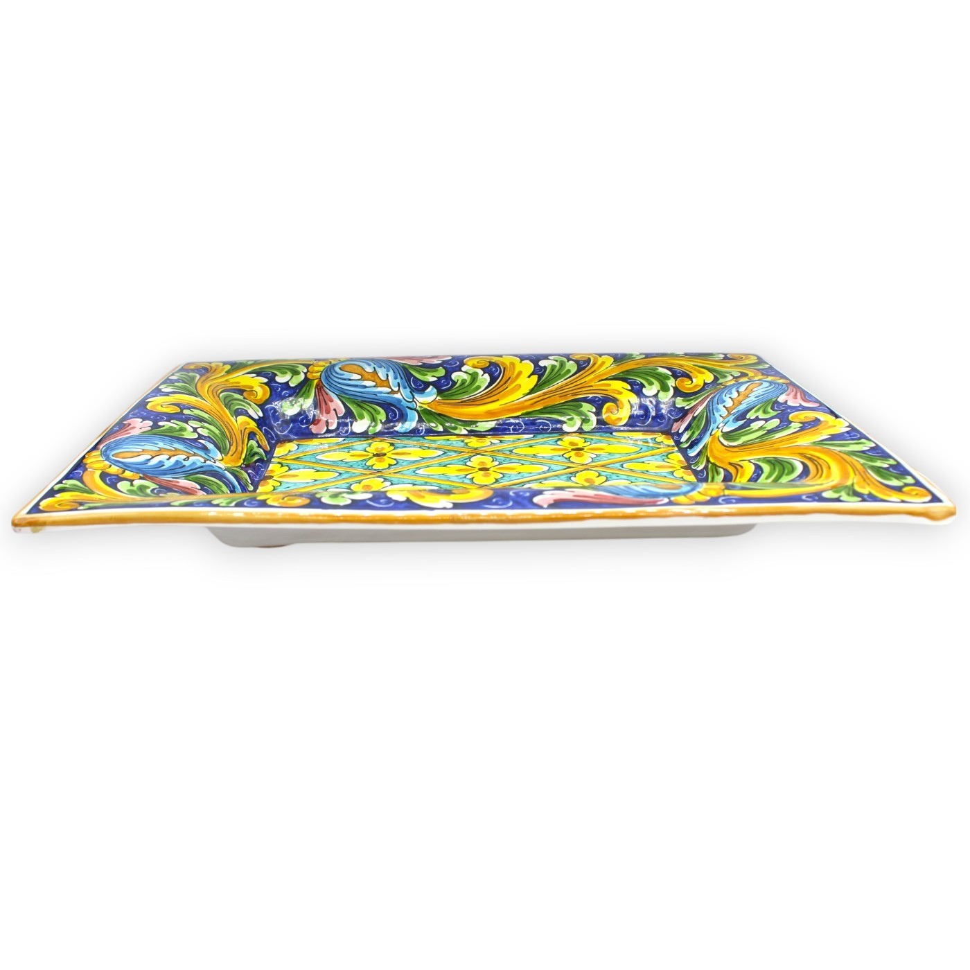 Rechteckiges Serviertablett aus Caltagirone-Keramik, sorgfältig von unseren Handwerksmeistern handgefertigt und dekoriert.
