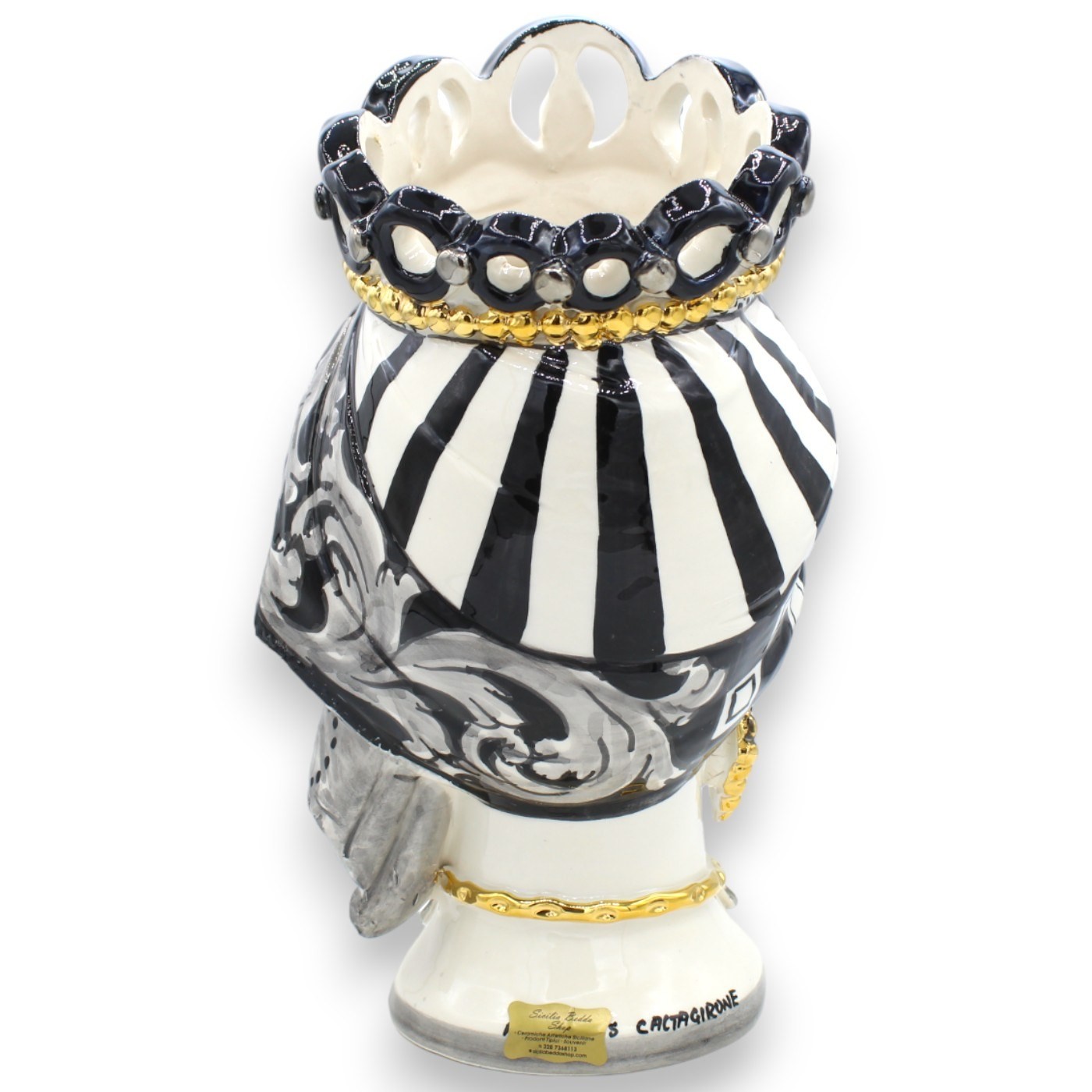 Sie wurden von einem Handwerksmeister aus Caltagirone handgefertigt, der sich um jedes einzelne Detail kümmerte, um daraus, wie auf den Fotos deutlich zu erkennen ist, ein wirklich einzigartiges Objekt der Calatina-Kunst zu machen.