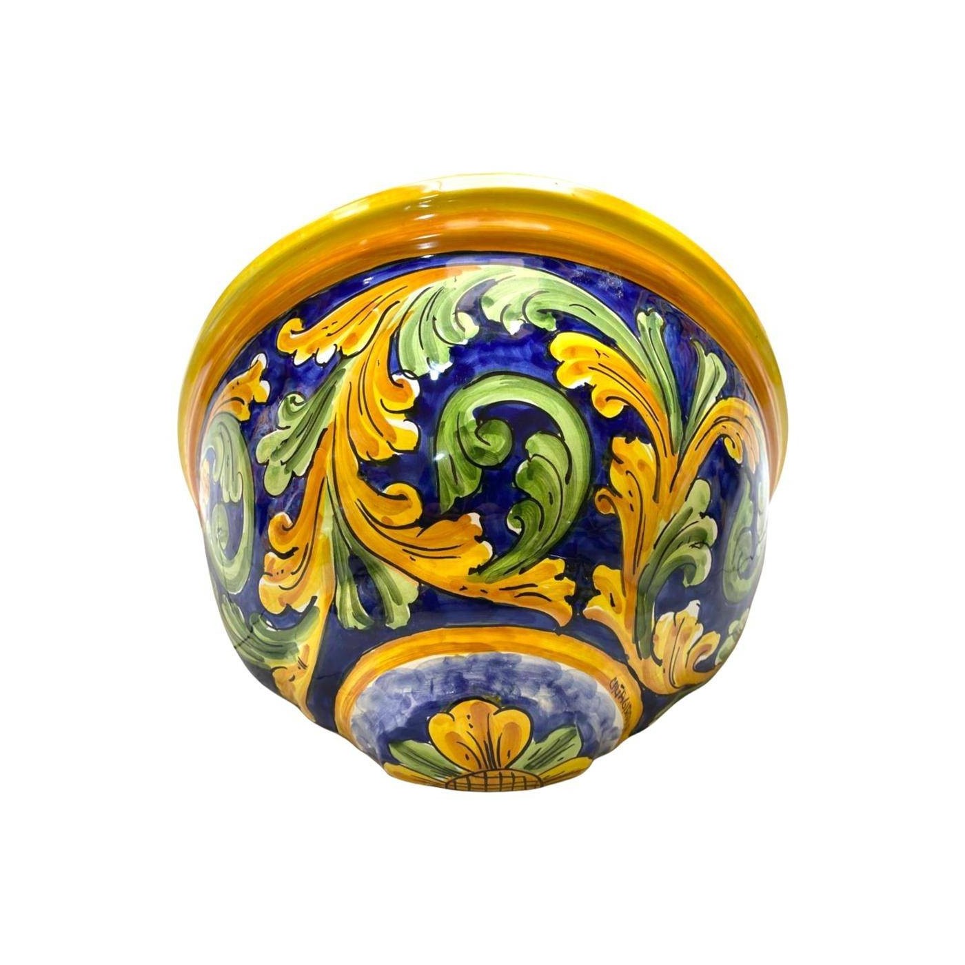Gerla, Wandblumentopf aus feiner Caltagirone-Keramik, von Hand dekoriert.