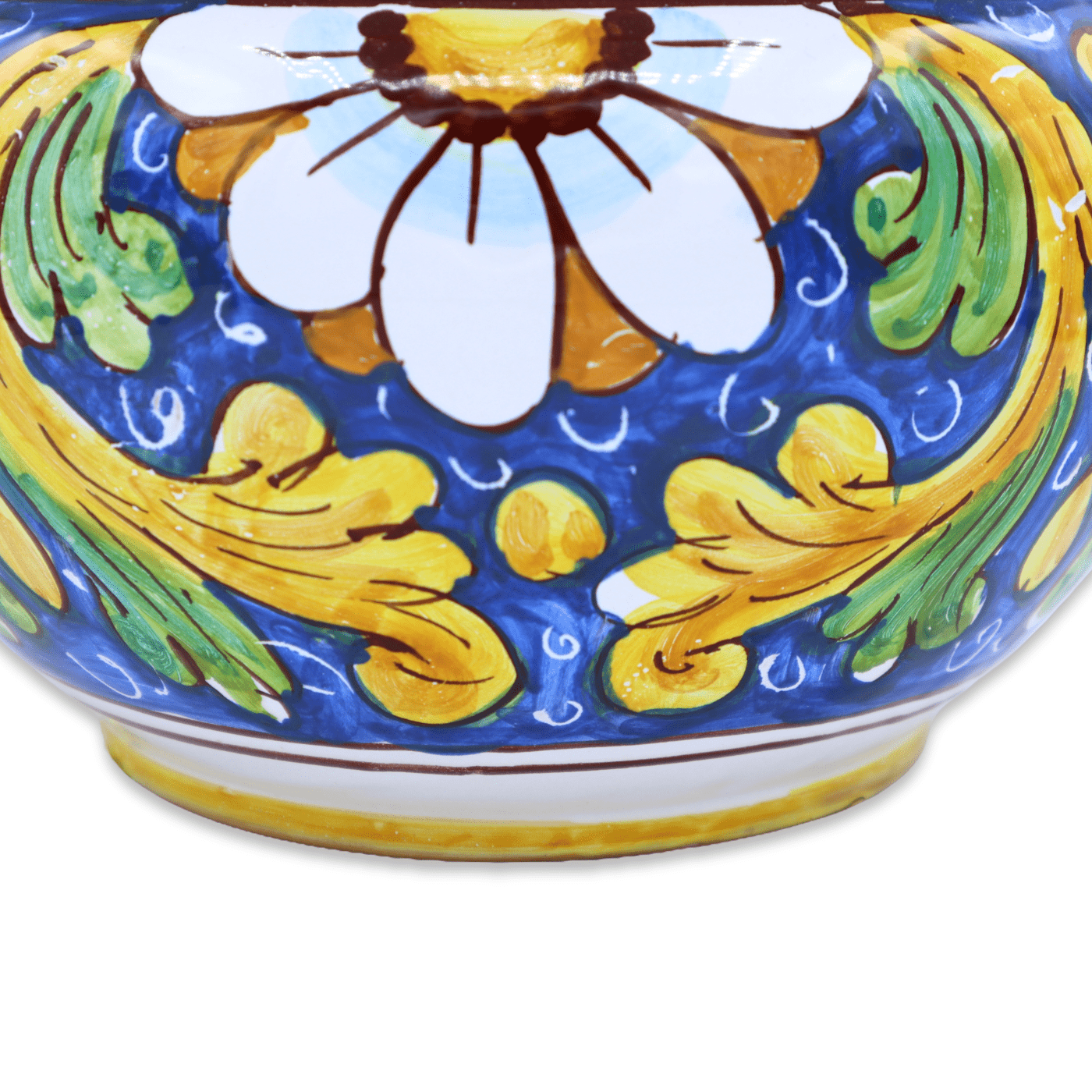 Prächtige Cachepot-Vase, Pflanzenvase aus feiner Caltagirone-Keramik, von unseren Meisterhandwerkern auf der Drehbank gefertigt und sorgfältig von Hand dekoriert.