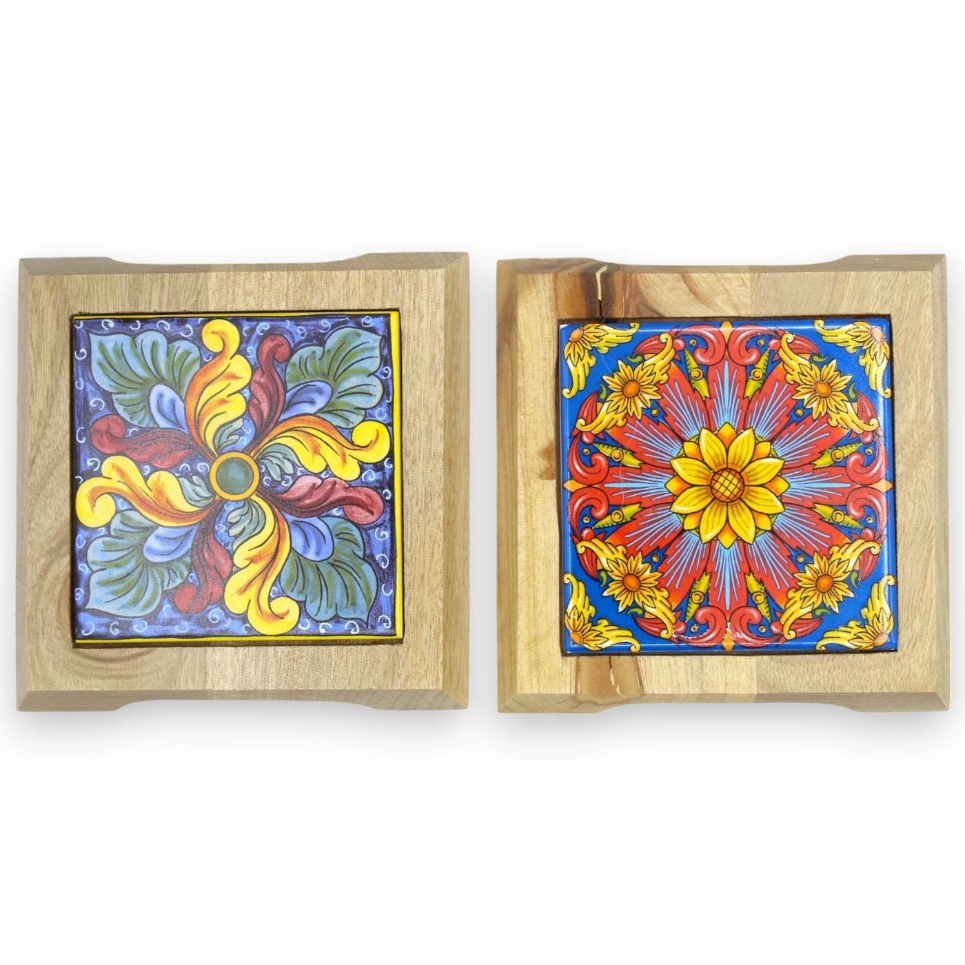 Reposa ollas de madera con revestimiento cerámico, realizado y decorado minuciosamente a mano por maestros artesanos.