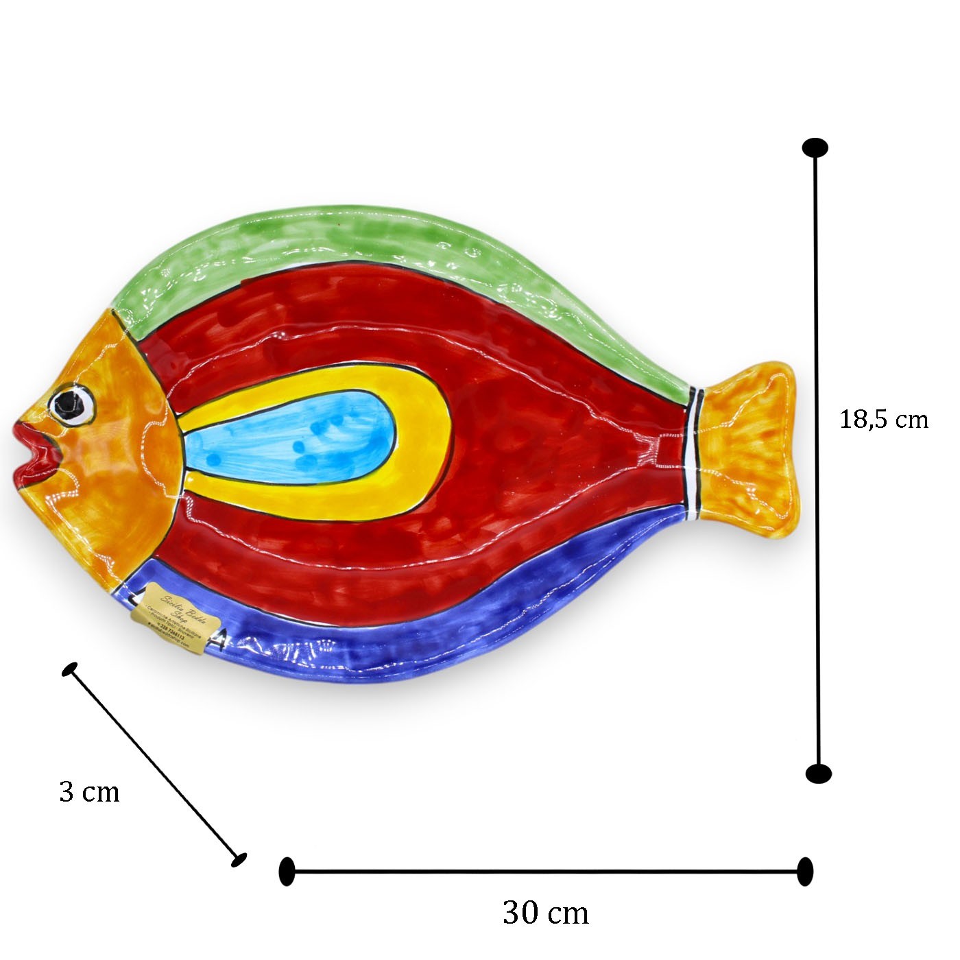Espléndida bandeja para servir o colgar en forma de pez realizada en fina cerámica siciliana, totalmente hecha a mano y decorada por nuestros maestros artesanos.