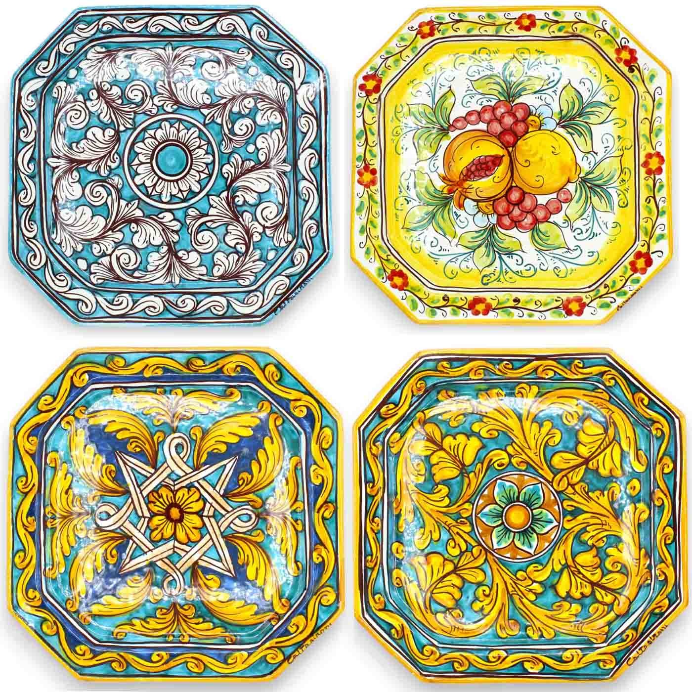 Plato octogonal de fina cerámica de Caltagirone, elaborado y minuciosamente decorado a mano, por nuestros maestros artesanos.