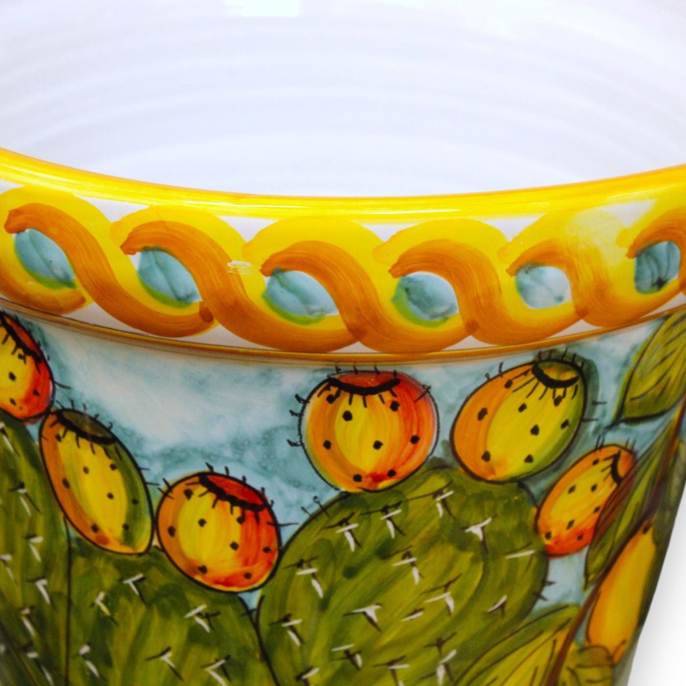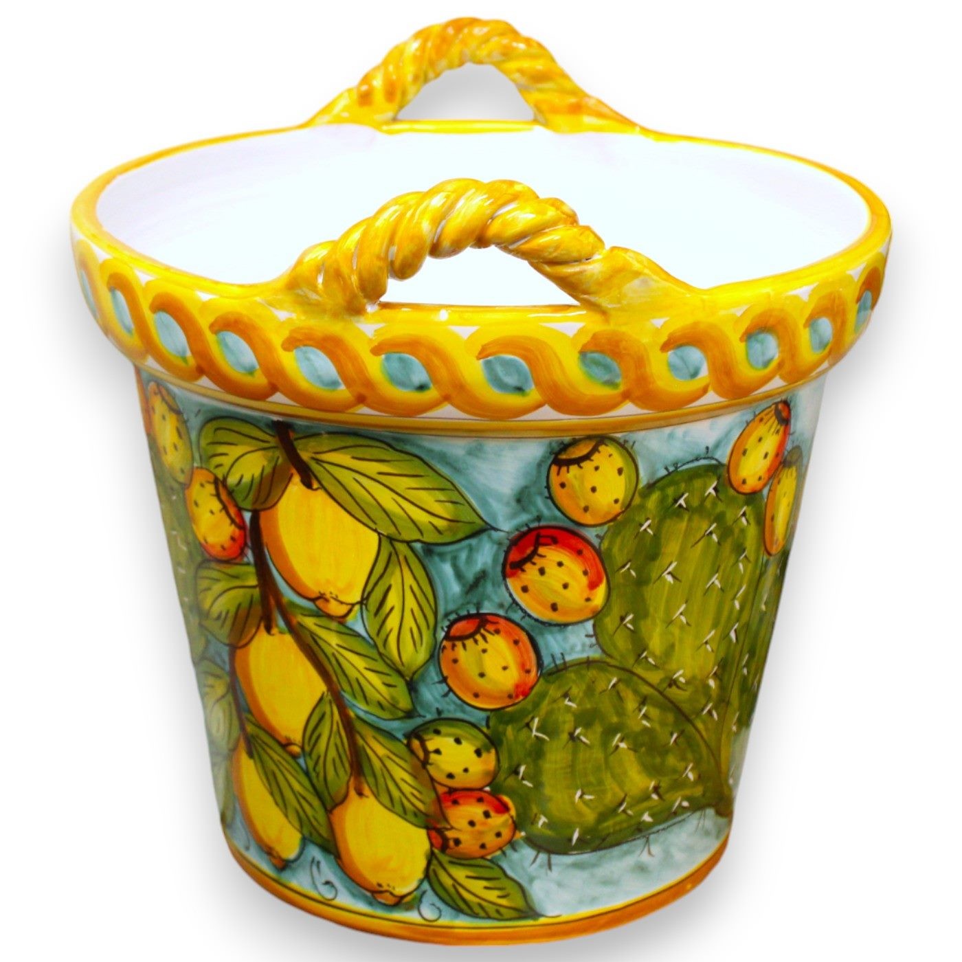 Imponente y elegante Jarrón Cesta con Asas de Cuerda, en fina cerámica siciliana, meticulosamente decorado a mano por nuestros maestros artesanos.