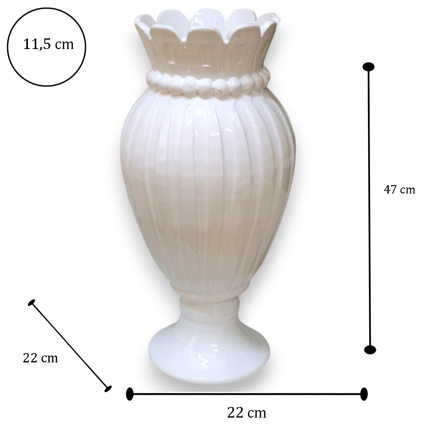 Magnífico jarrón Corona con ranuras, en fina cerámica, realizado en torno por nuestros maestros artesanos y minuciosamente decorado a mano.