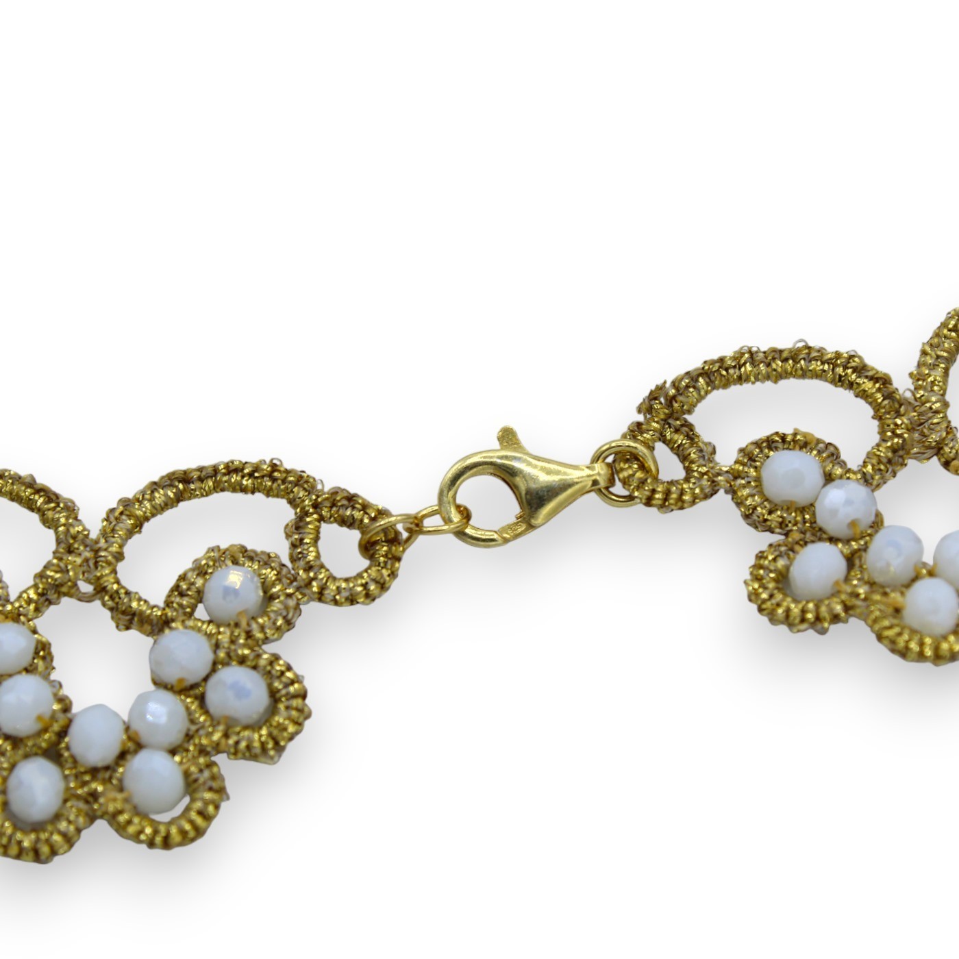 Splendide bracelet en fine dentelle frivolité, modèle col rond, avec cristaux.
