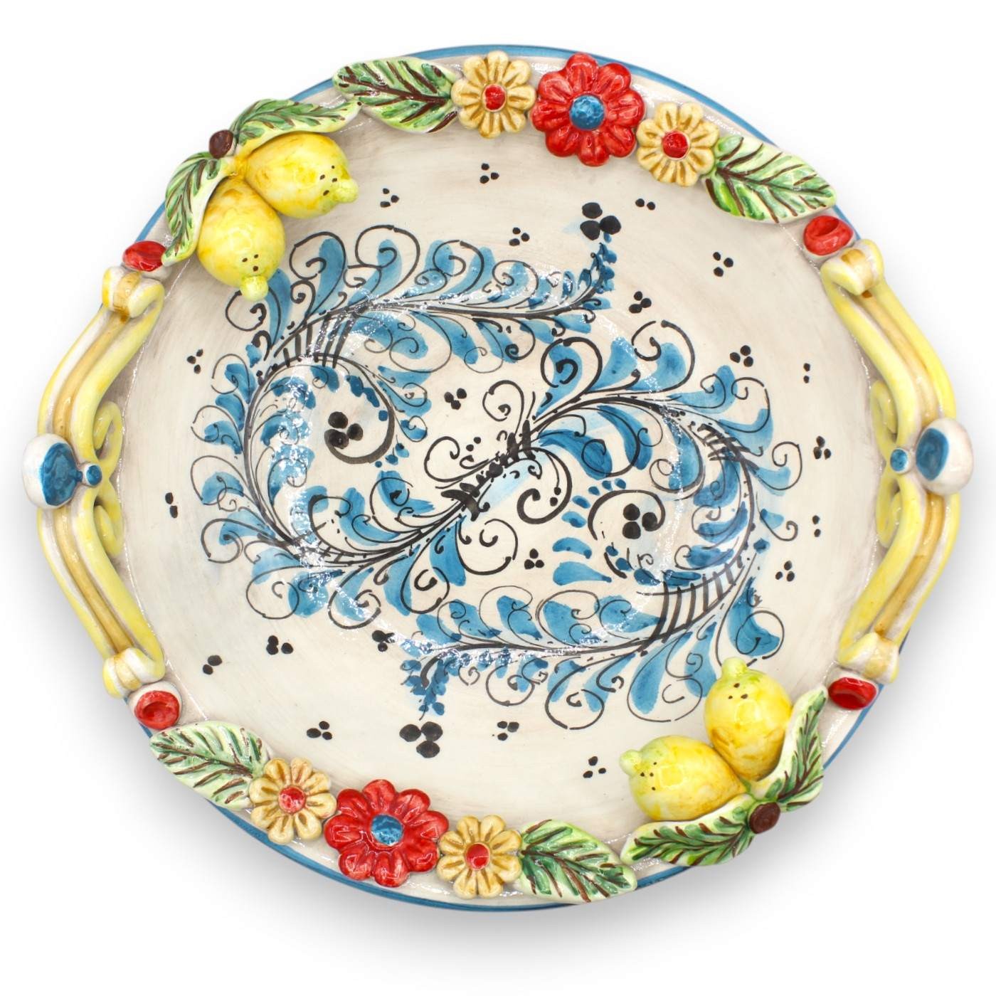 Centre de table raffiné en céramique de Caltagirone, méticuleusement fabriqué et décoré à la main par nos maîtres artisans.