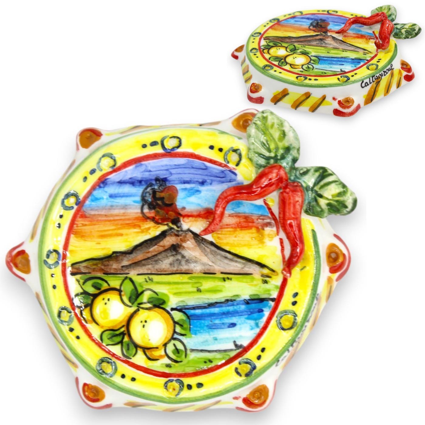 NB : s'agissant d'articles artisanaux, les mesures peuvent varier de 1/2 cm par rapport à celles indiquées. Même la température du four ou la saisonnalité de la production pourraient légèrement influencer les nuances minimales de couleur et les petits détails dans les applications de l'artefact qui sont naturels et évidents du travail artisanal. Chaque pièce est toujours unique !