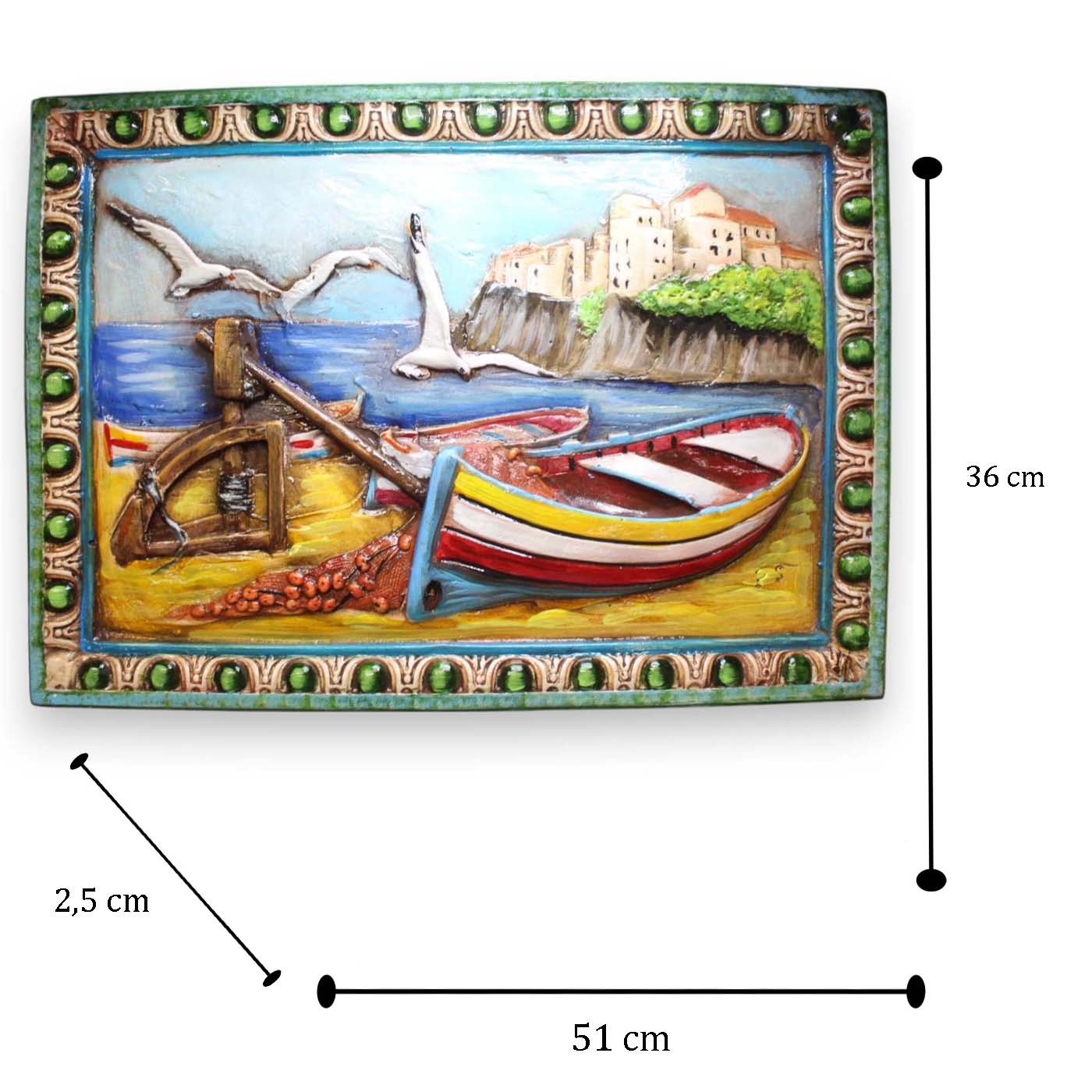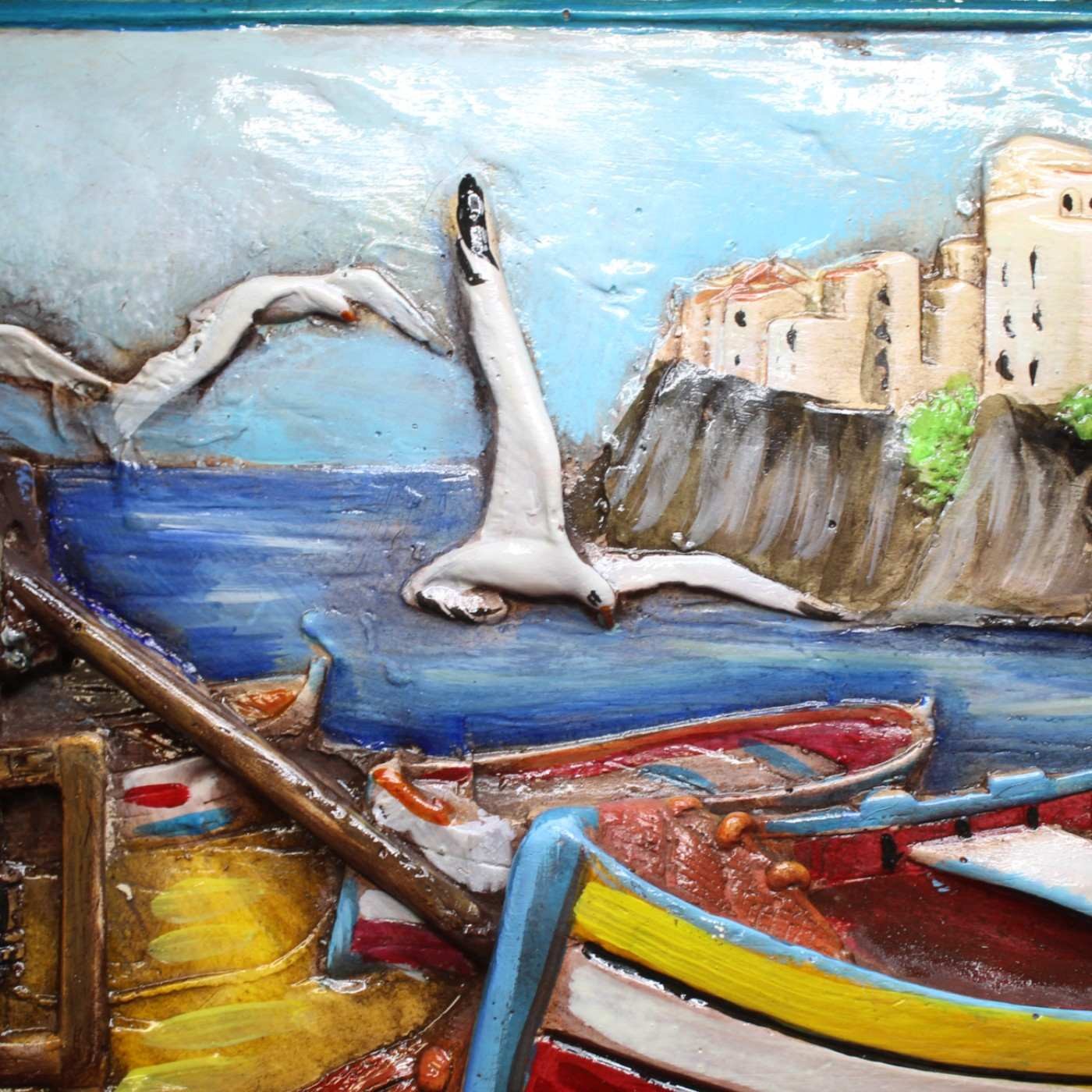 Reproduction d'un tableau représentant une scène marine, entièrement réalisé en relief et décoré à la main par nos maîtres artisans.