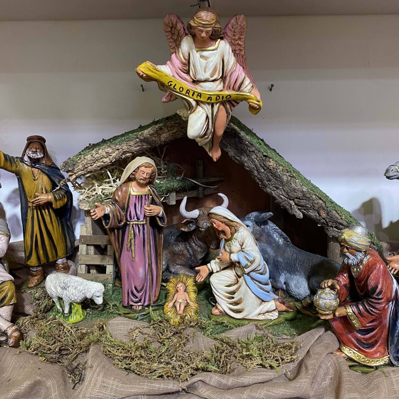 Crèche de collection en terre cuite 100% artisanale, 20 sujets + cabane, ca 20 cm environ - Faite et décorée à la main