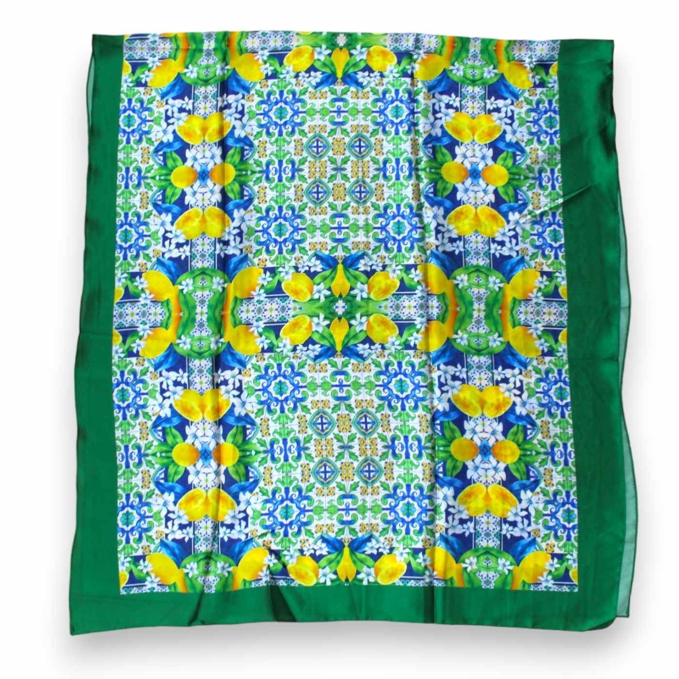 Fantastique écharpe paréo avec majolique sicilienne, composée de 70% viscose et 30% soie.