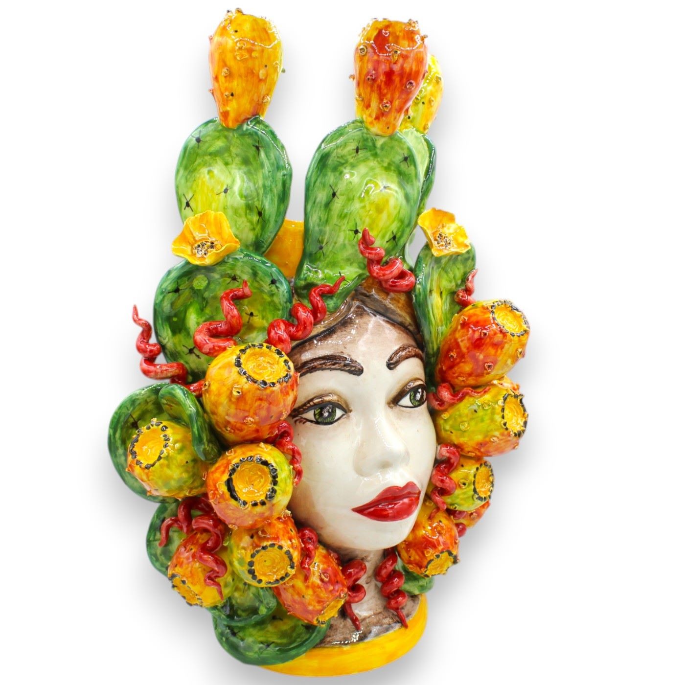 Paire de têtes de Maure en fine céramique de Caltagirone, entièrement réalisées et minutieusement décorées à la main.