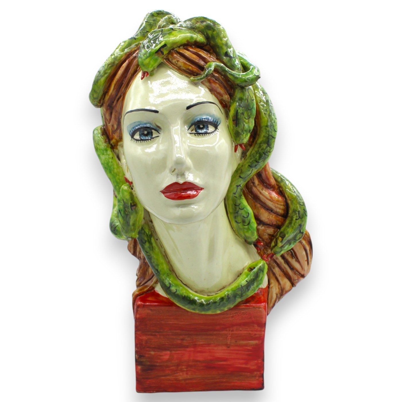 Apportez le charme intemporel de la mythologie classique dans votre intérieur avec cette extraordinaire tête de Méduse en céramique artistique de Caltagirone , entièrement réalisée à la main par des maîtres artisans siciliens selon l'ancienne tradition céramique locale.