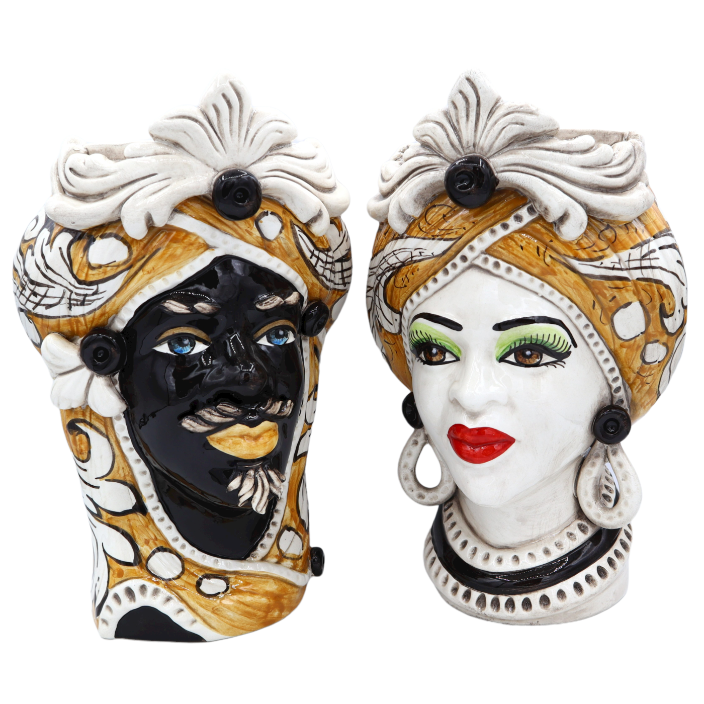 They were handmade by a master craftsman from Caltagirone who took care of every single detail to make them, as is clearly evident from the photos, a truly unique object of Calatina art.