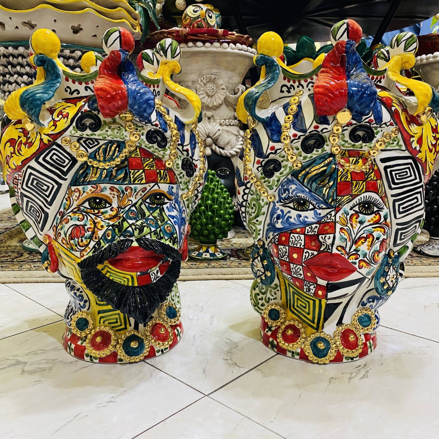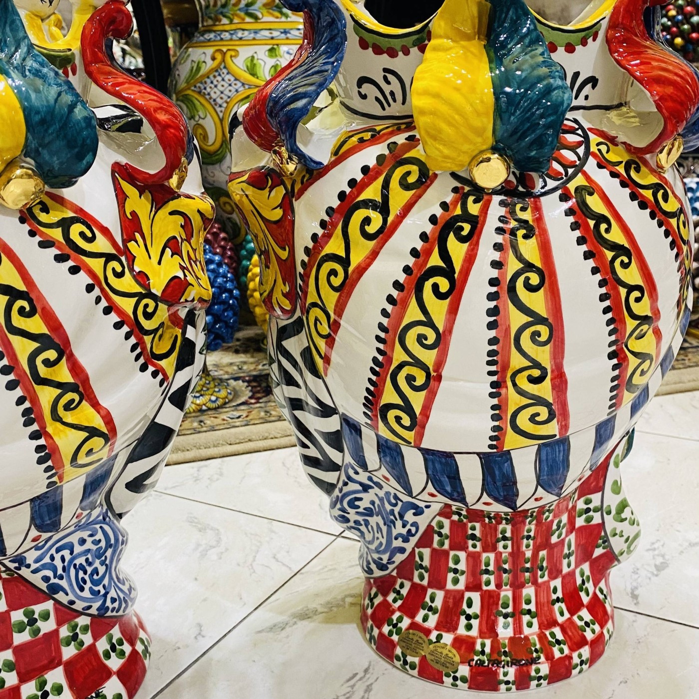 Rich in ZECCHINO GOLD in every detail and meticulously decorated by our master craftsmen of Caltagirone who have taken care of every detail to make them a true jewel of Caltagirone art.