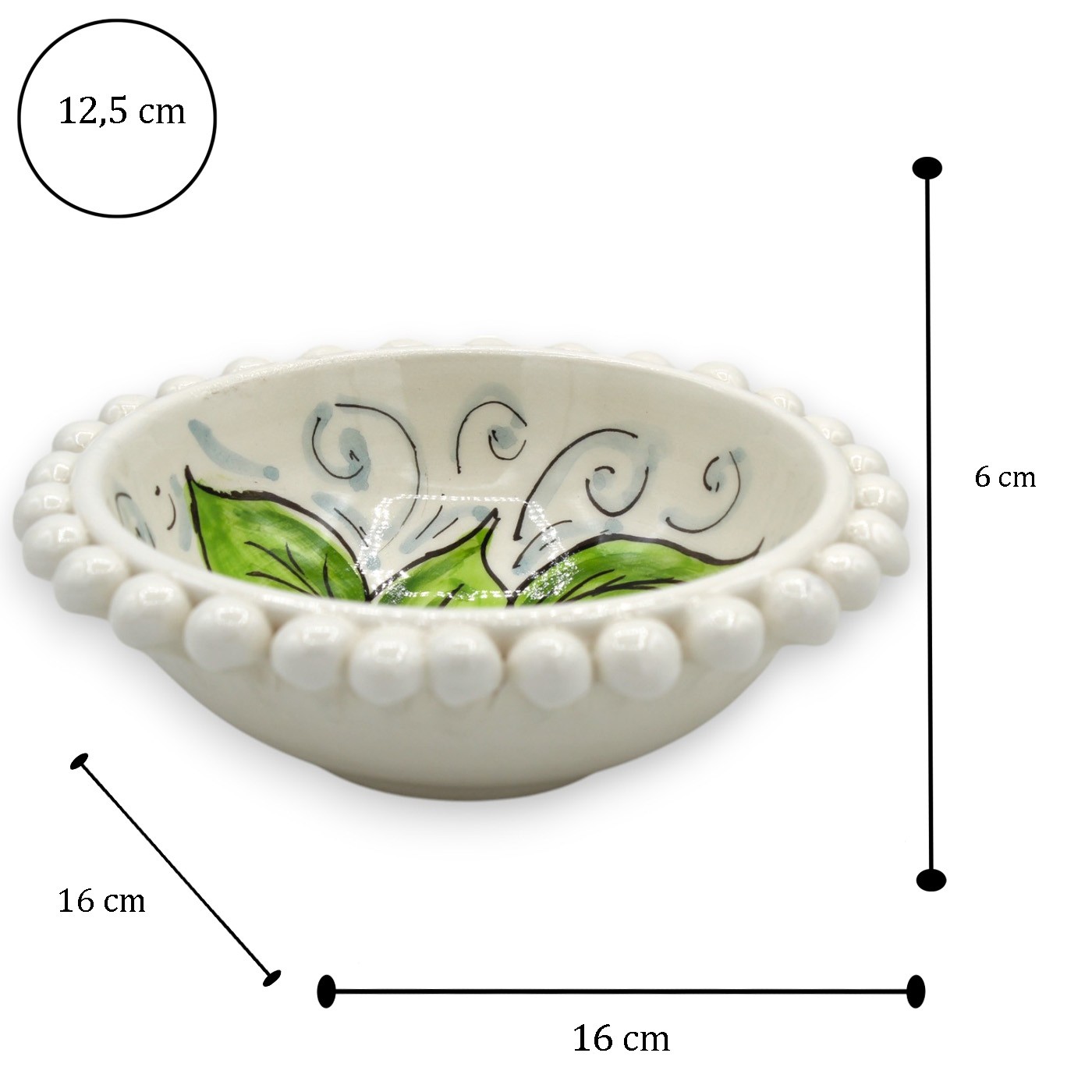 N.B.: trattandosi di articoli artigianali interamente realizzati a mano le misure potrebbero variare di 1 o 2 cm rispetto a quelle indicate. Anche la temperatura del forno o la stagionalità di produzione potrebbero leggermente influire su minime tonalità di colore e piccoli dettagli nelle applicazioni del manufatto che sono naturali e ovvie della lavorazione artigianale. Ogni pezzo è sempre un pezzo unico!