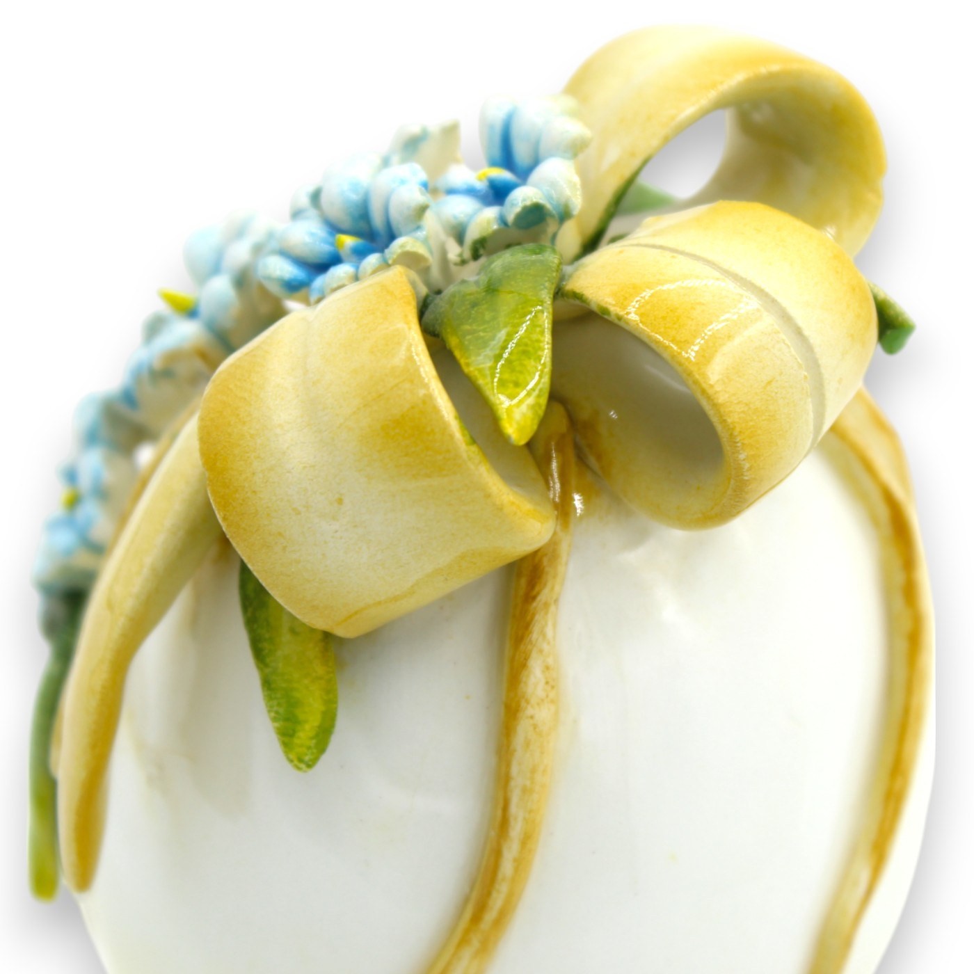 Splendido Uovo con Gambo in pregiata ceramica, interamente realizzato e decorato a mano dai nostri maestri artigiani.