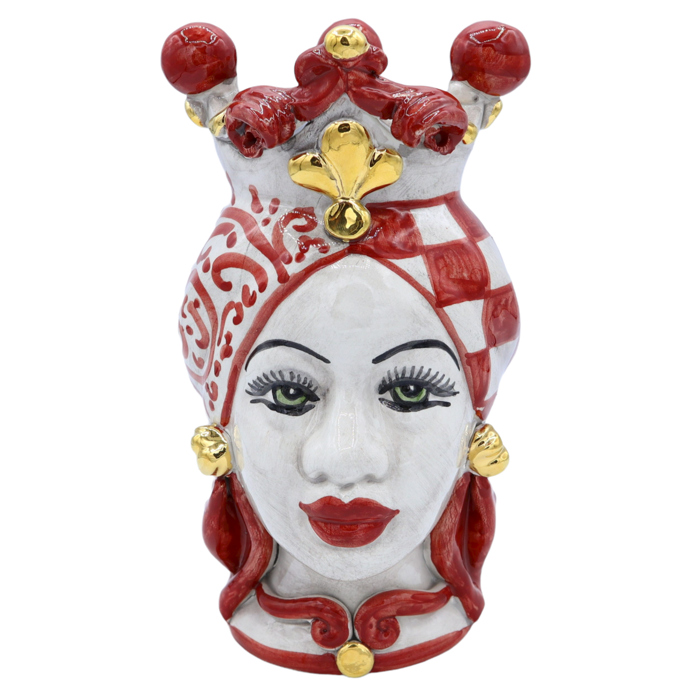 Coppia di Teste di Moro in pregiata ceramica di Caltagirone interamente foggiate e decorate a mano.
