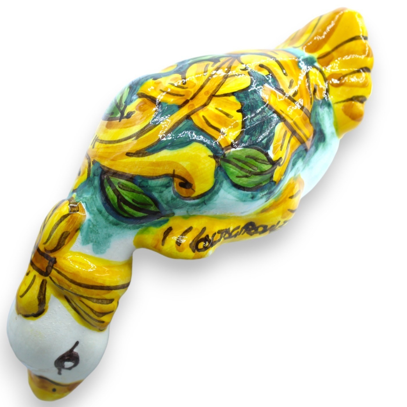 Eend ondersteboven (de curtigghiara), in keramiek uit Caltagirone, met de hand gemaakt en minutieus gedecoreerd door onze meestervakmensen.