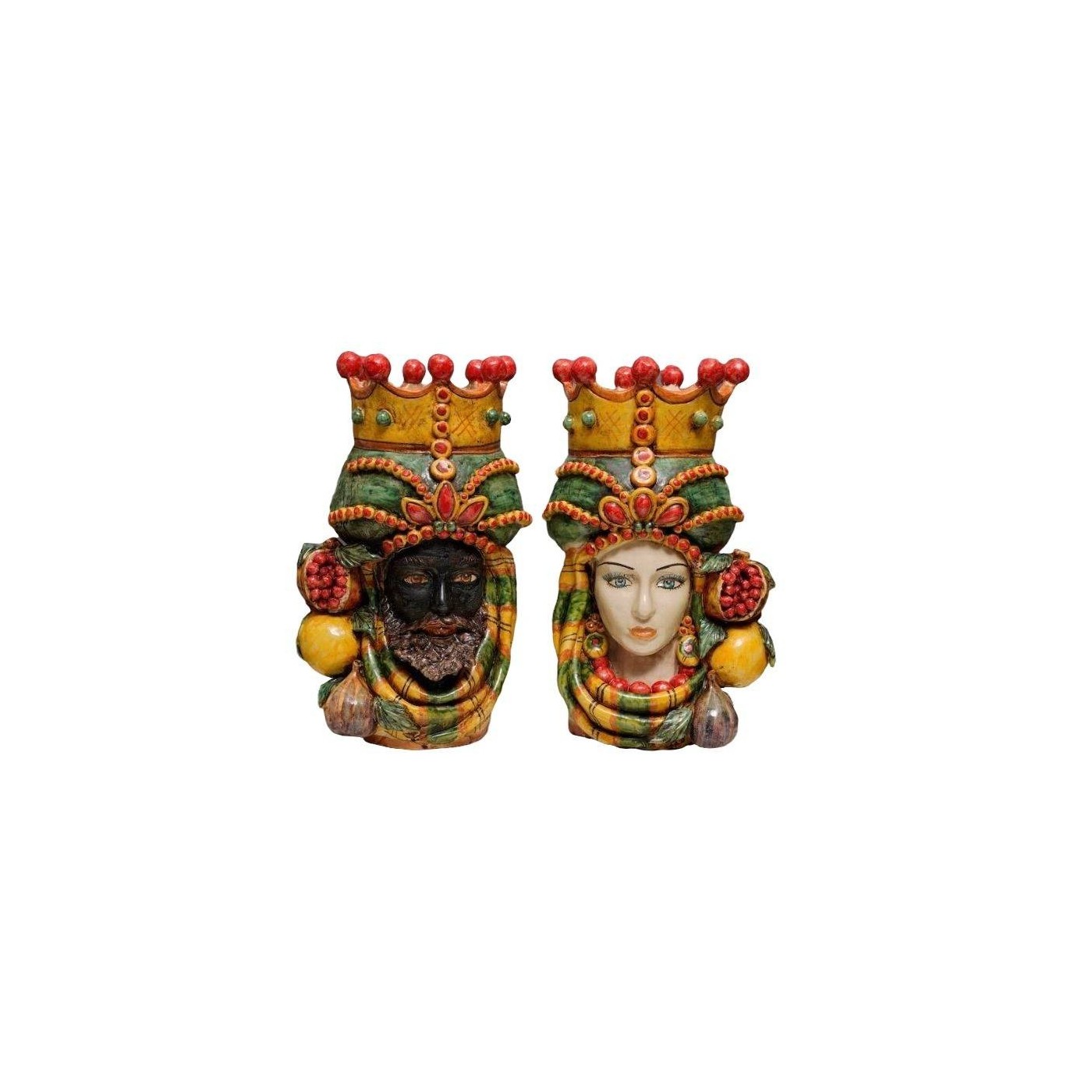 Prachtig paar Caltagirone Siciliaanse Moorse hoofden, volledig met de hand gemaakt en gedecoreerd