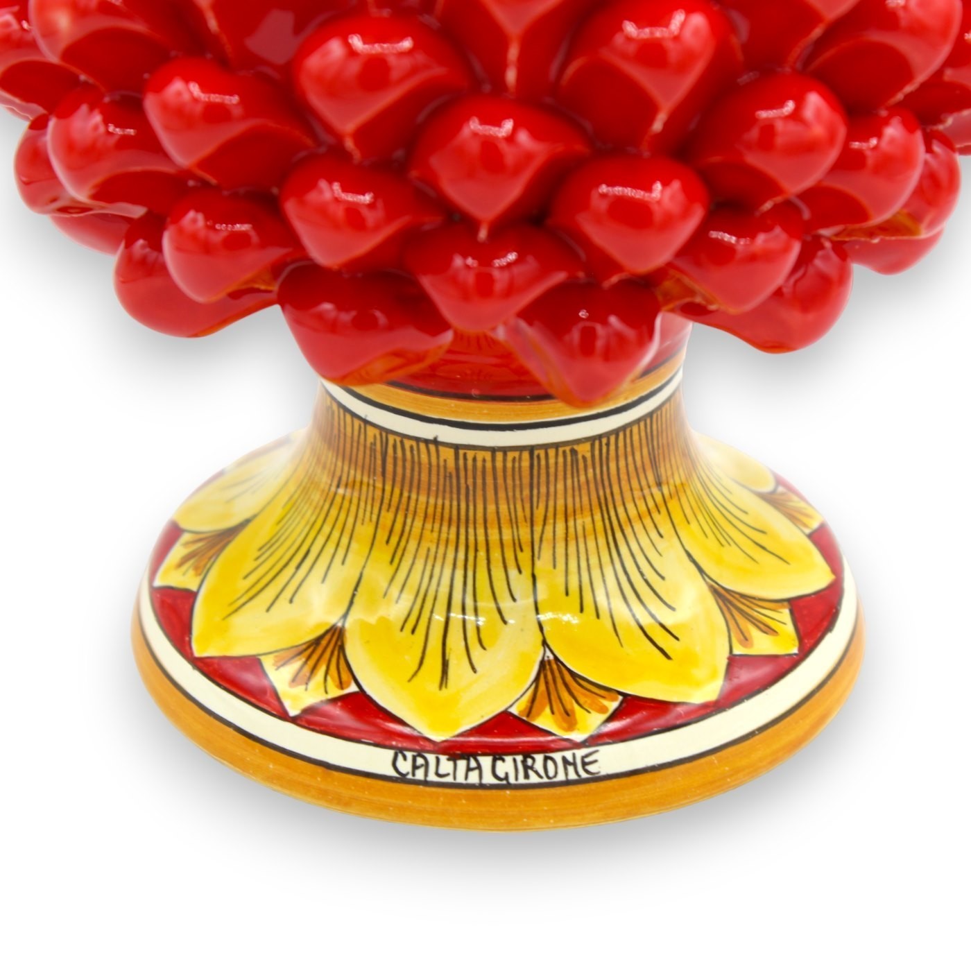 Siciliaanse dennenappel van fijn Caltagirone-keramiek, volledig met de hand gemaakt en zorgvuldig gedecoreerd door onze meestervakmensen.