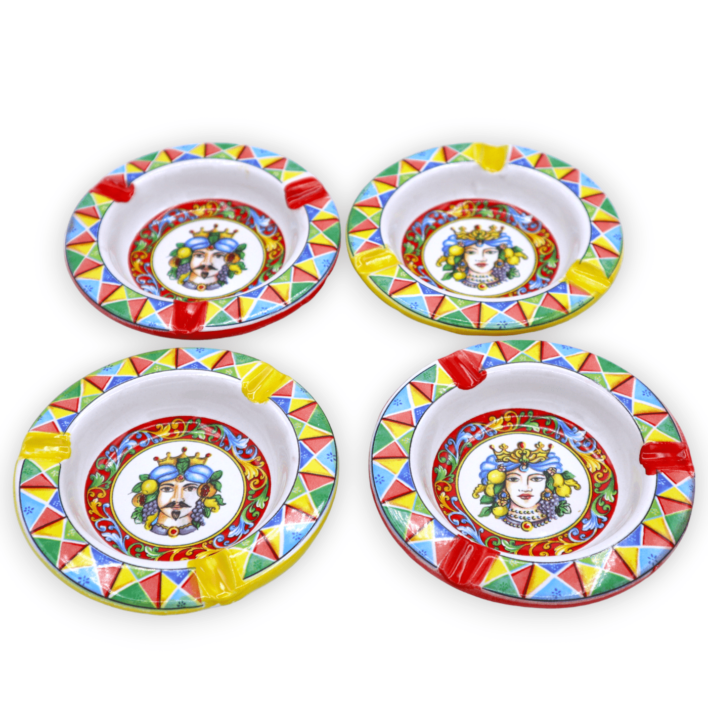 Asbak van keramiek met donkerbruine decoratie en willekeurige kleur.