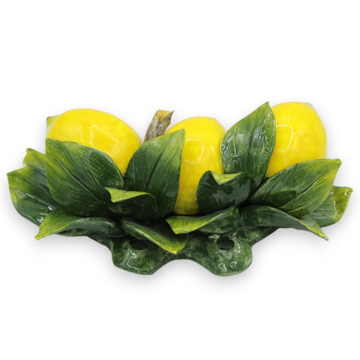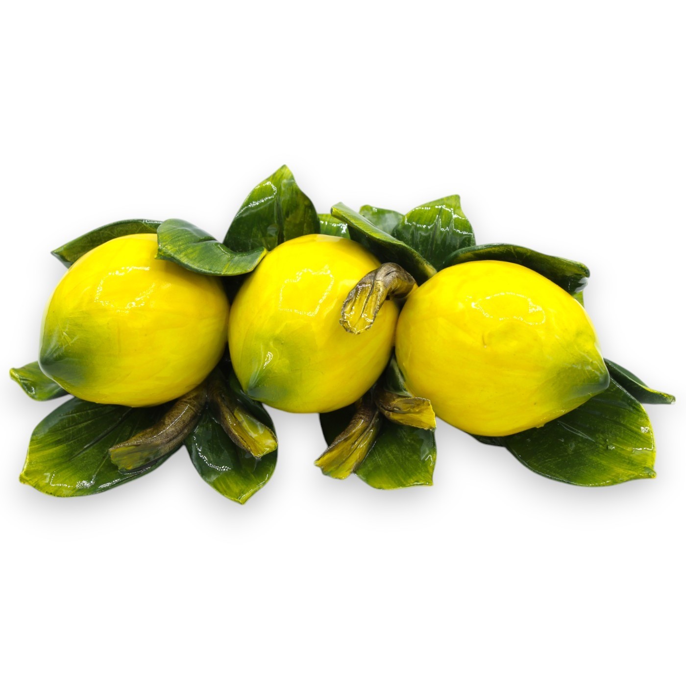Prachtige Arco fasce wanddecoratie bestaande uit 3 MAXI citroenen en bladeren van fijn keramiek, met de hand gemaakt en versierd door onze meester-ambachtslieden.