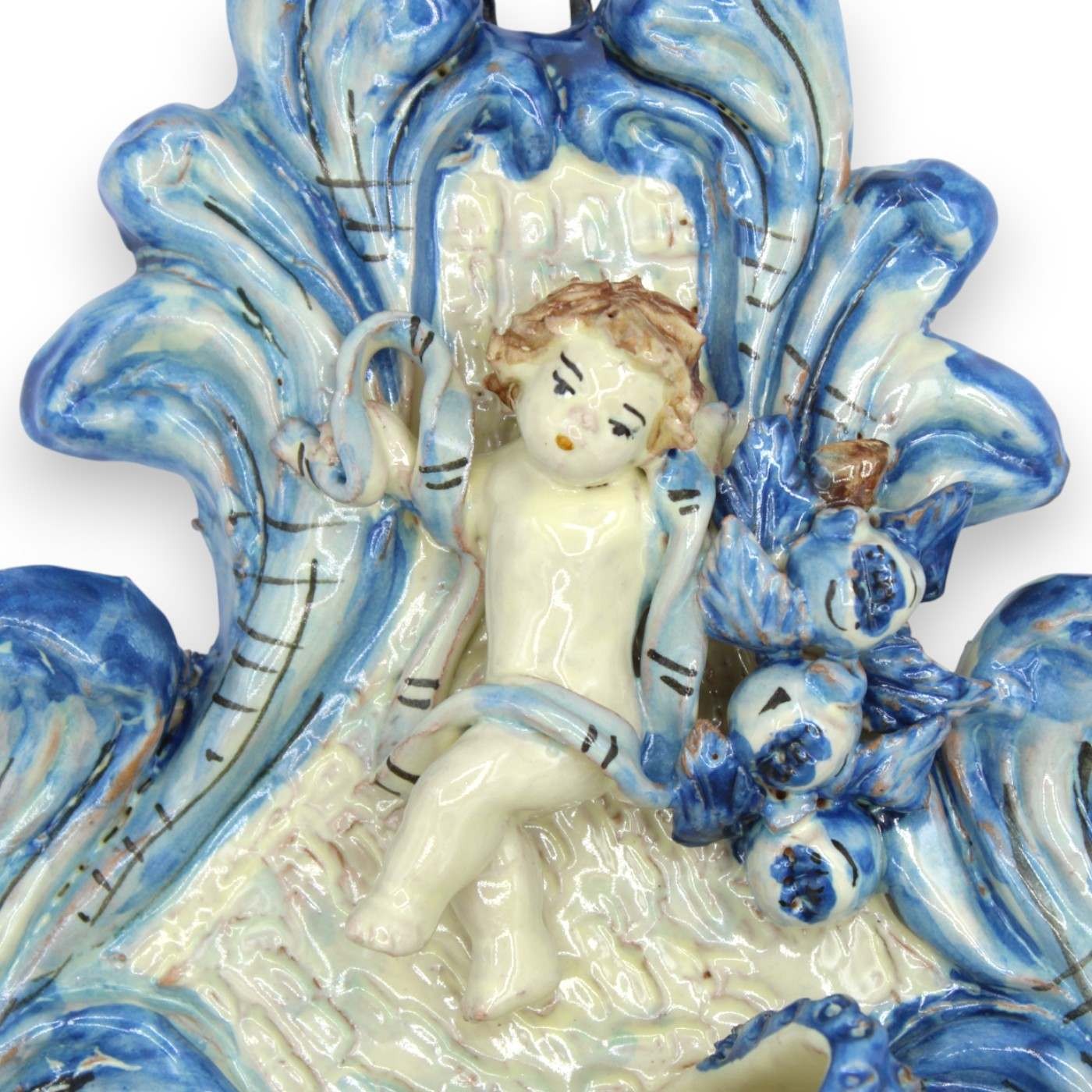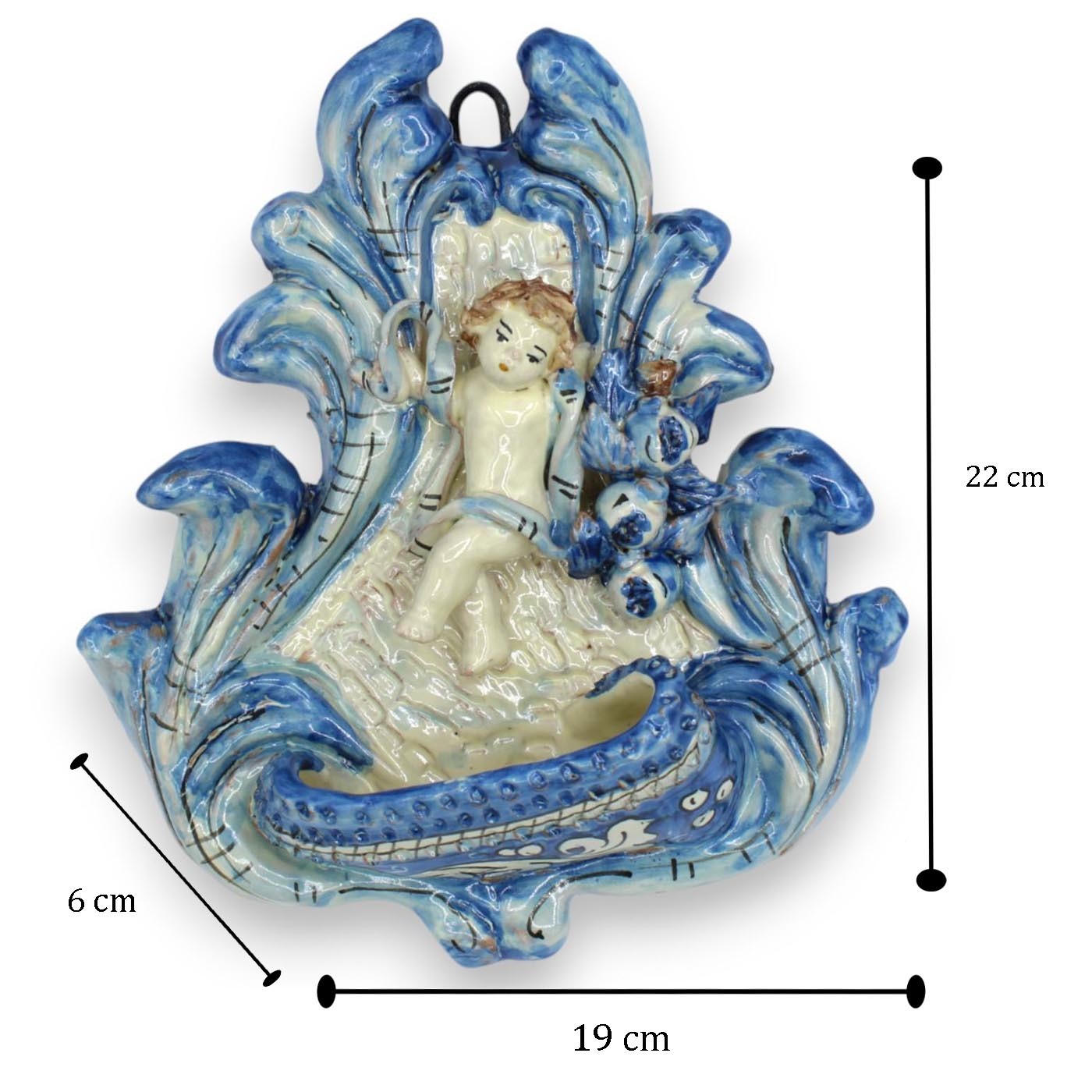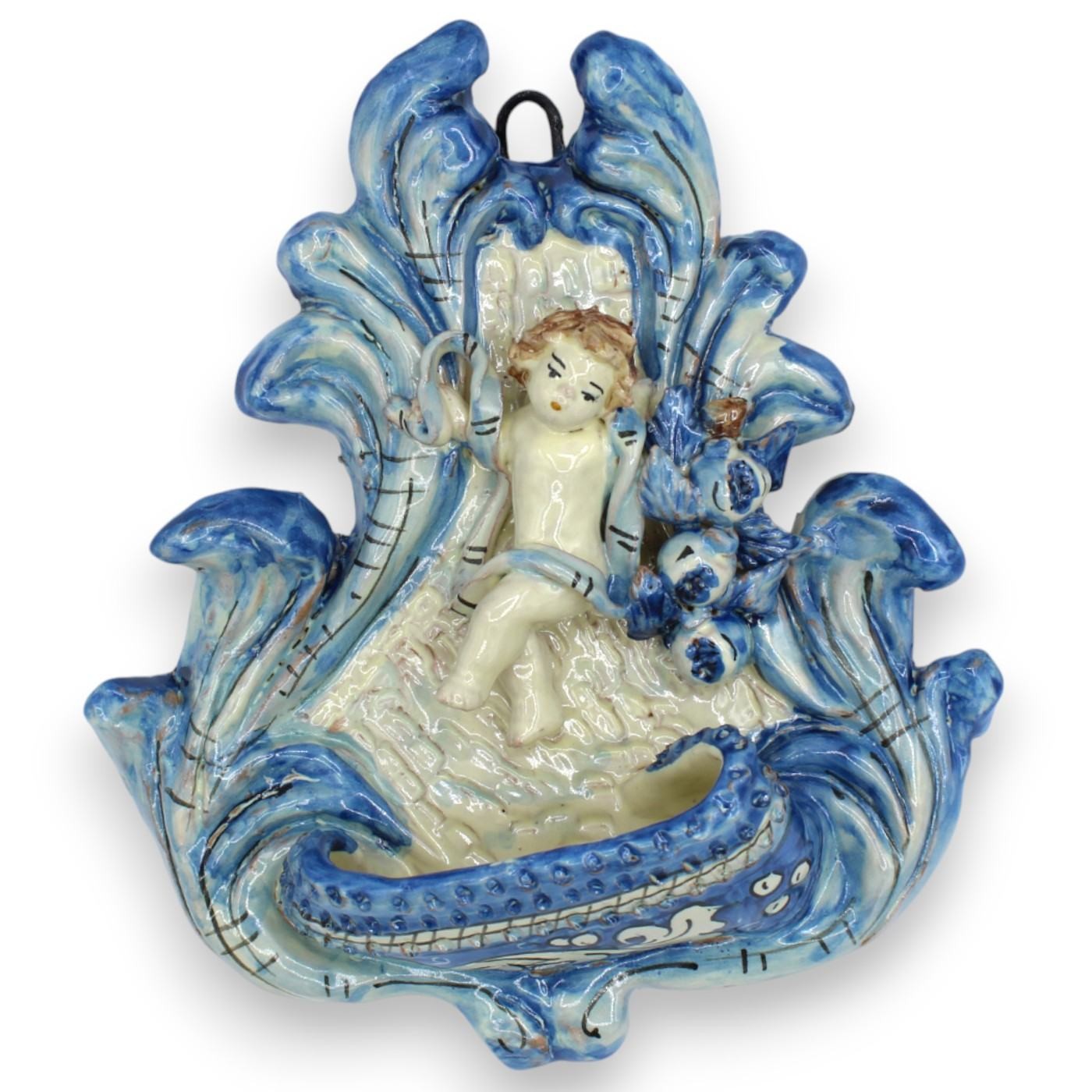 Prachtig Caltagirone wijwatervat van keramiek, zorgvuldig met de hand vervaardigd en versierd door onze meester-ambachtslieden.
