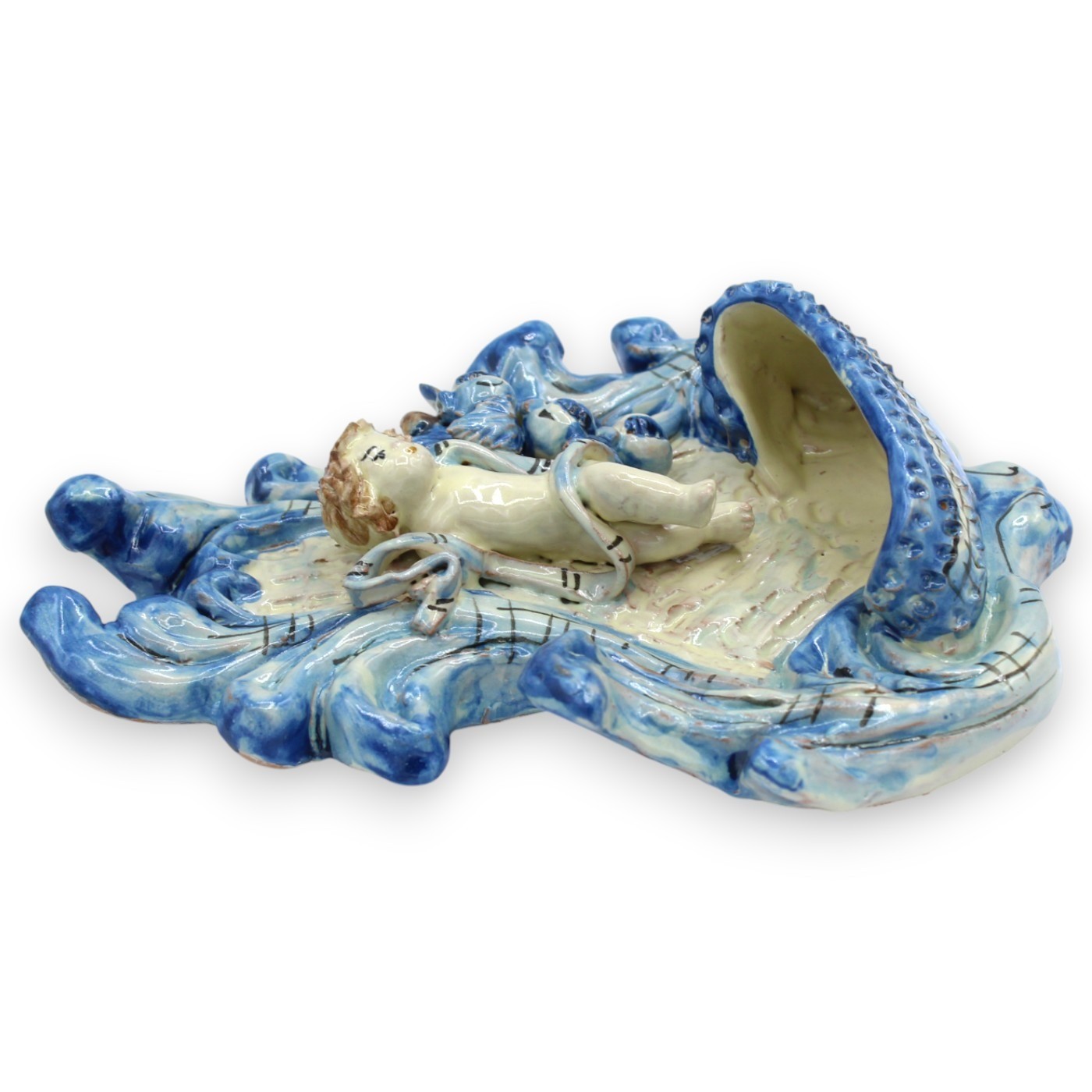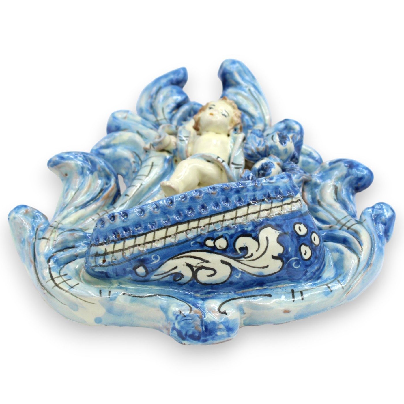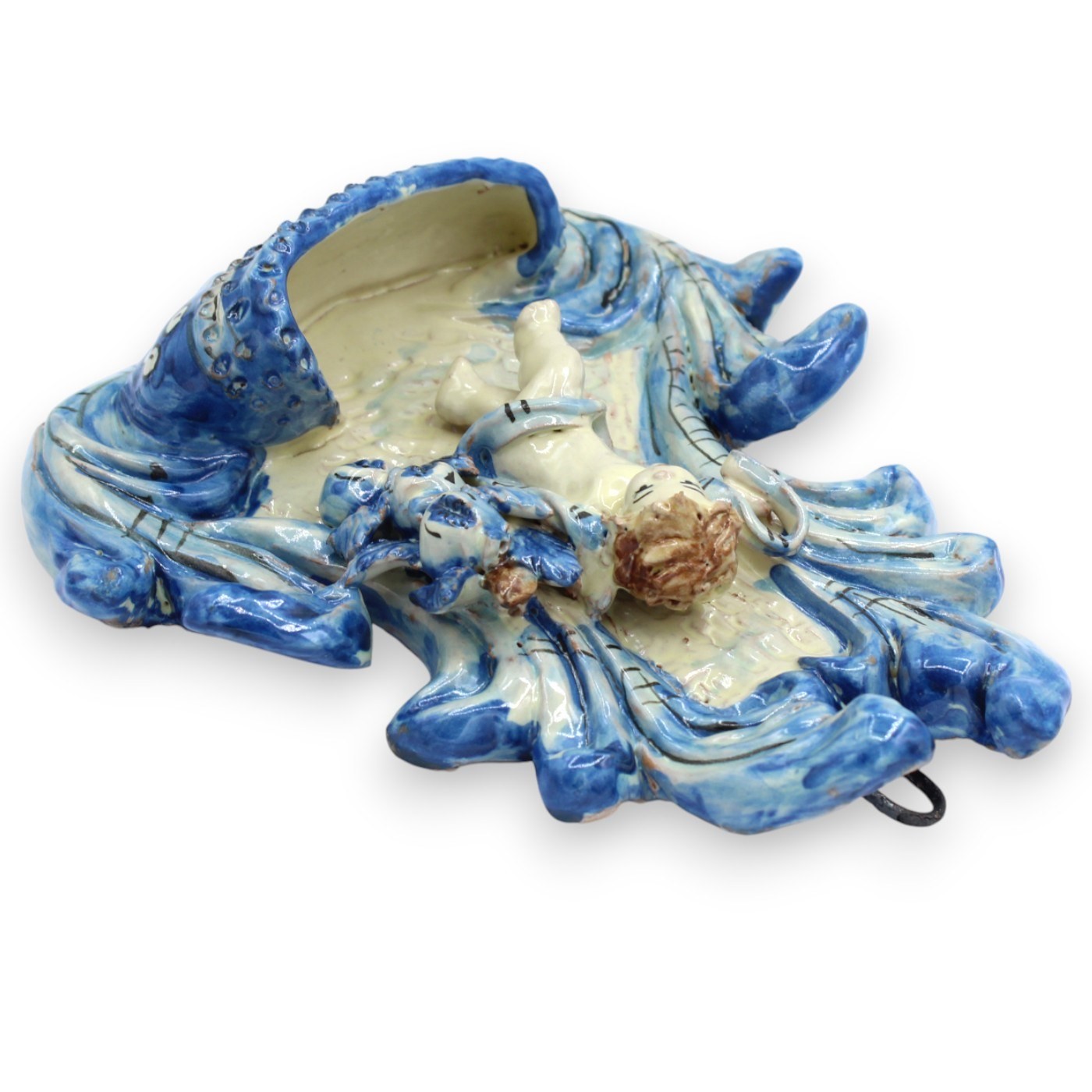 Prachtig Caltagirone wijwatervat van keramiek, zorgvuldig met de hand vervaardigd en versierd door onze meester-ambachtslieden.