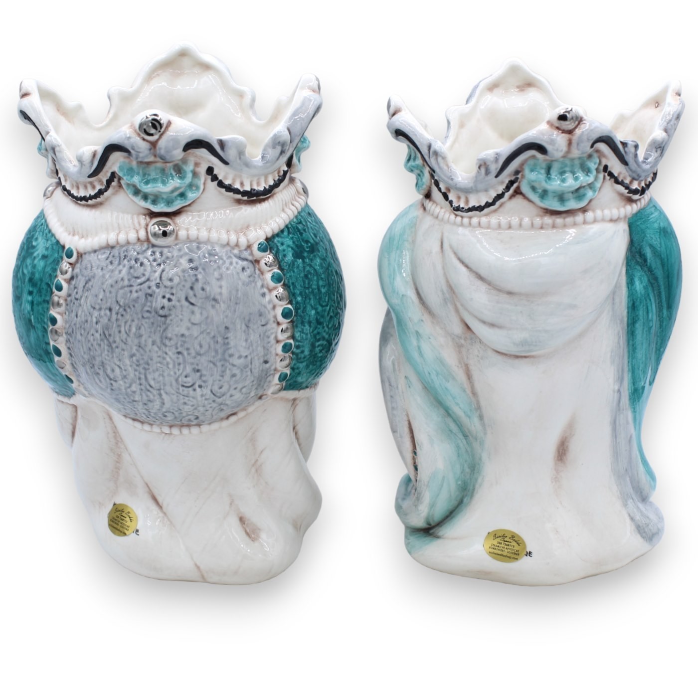 Para głów Maura z doskonałej ceramiki Caltagirone, w całości ukształtowana i ozdobiona ręcznie.