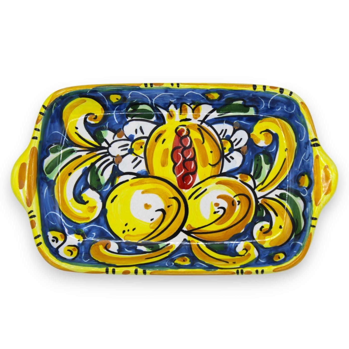 Wspaniała taca ceramiczna Caltagirone, wykonana i pieczołowicie zdobiona ręcznie przez naszych mistrzów rzemiosła.