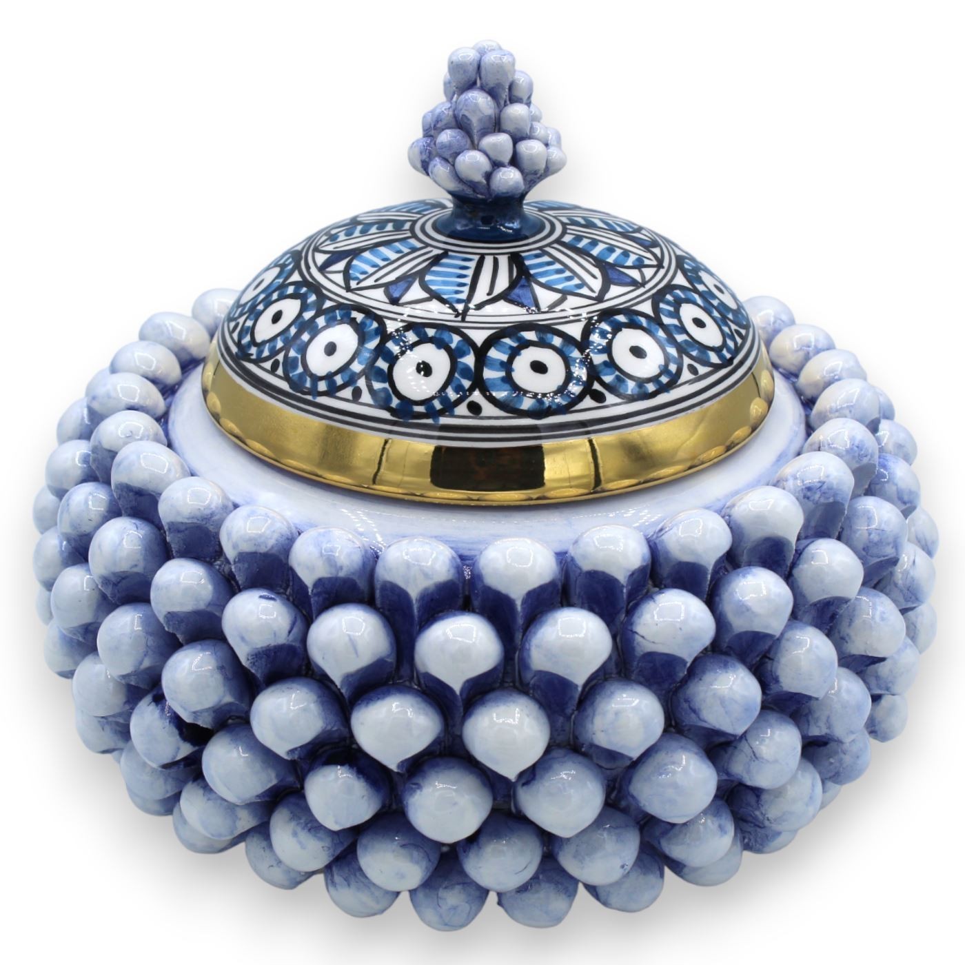 Sycylijski słoik na ciastka Pigna lub pudełko na biżuterię z ceramiki Caltagirone w całości wykonane ręcznie przez naszych mistrzów rzemiosła.