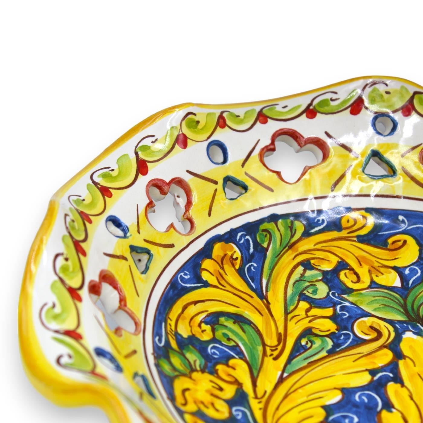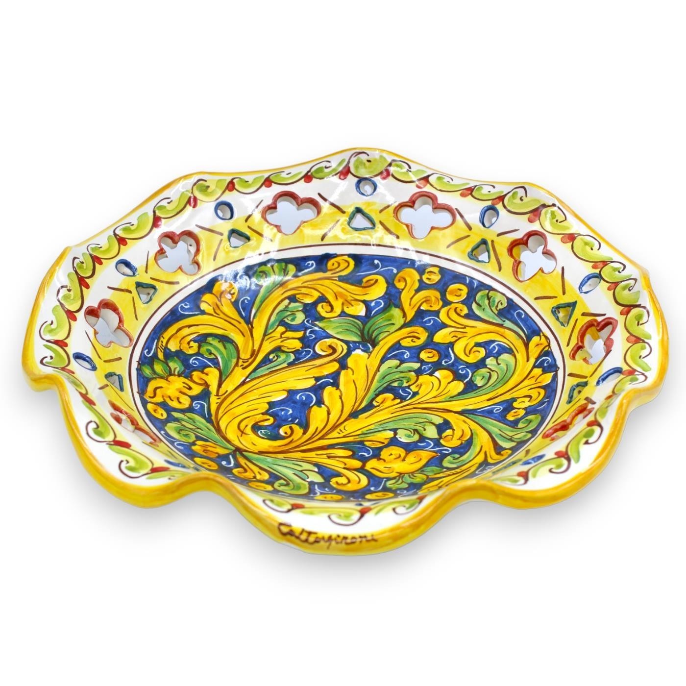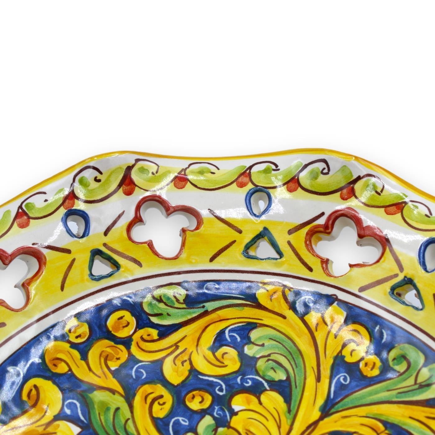 Wyrafinowany element centralny z ceramiki Caltagirone, wykonany i starannie ozdobiony ręcznie przez naszych mistrzów rzemieślników.