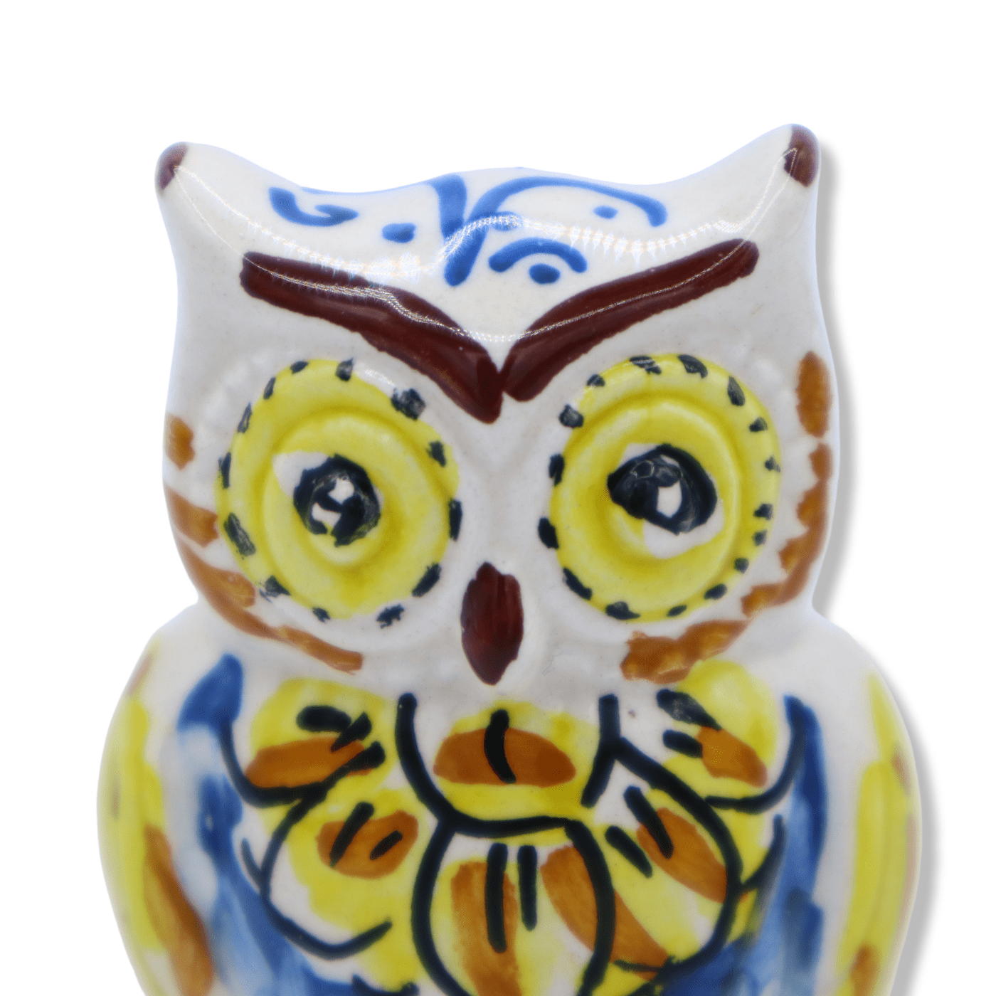 Esplêndida coruja em preciosa cerâmica Caltagirone, feita e meticulosamente decorada à mão pelos nossos mestres artesãos.