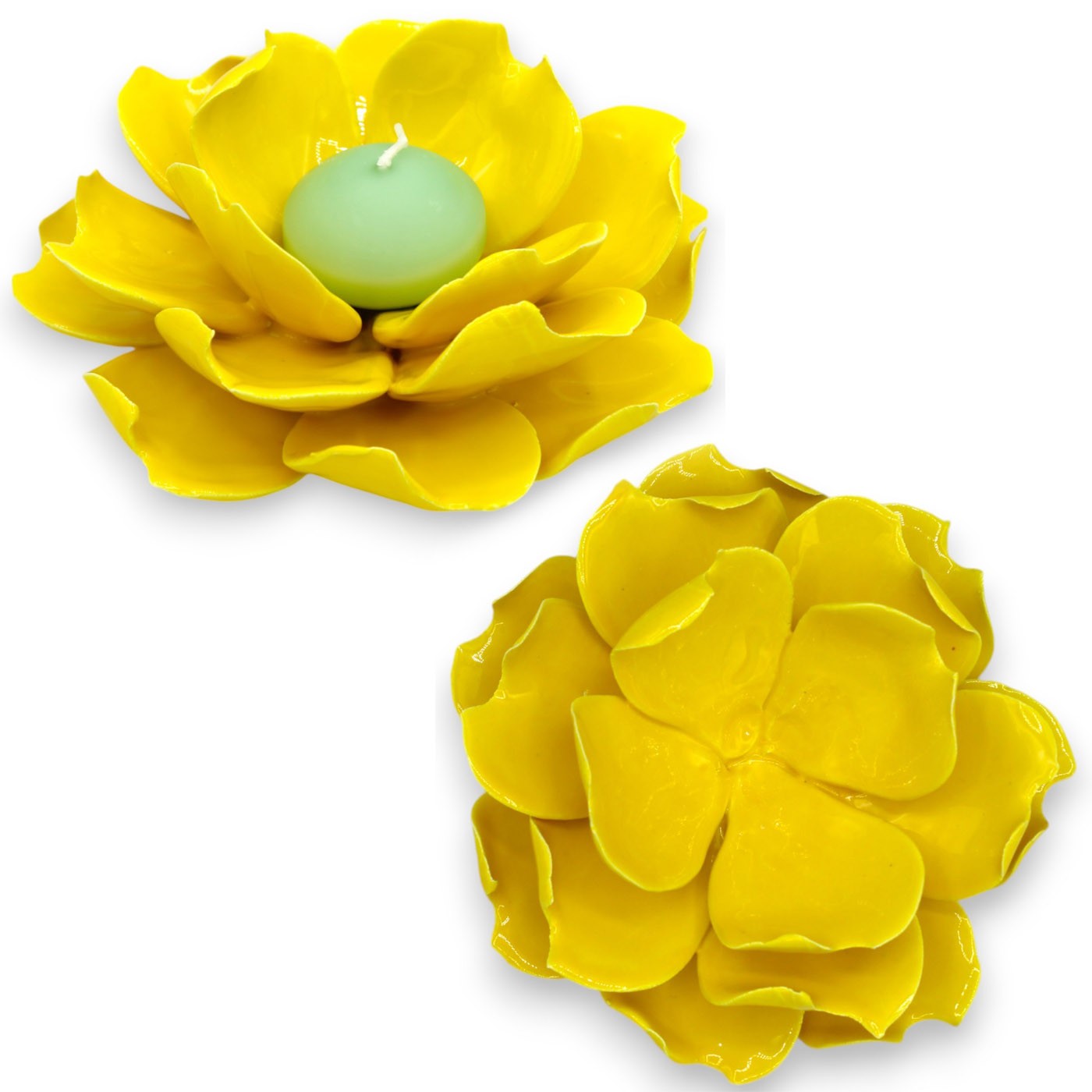 Fantastisk näckros vattenväxt ljusstake i fin keramik, gjord och dekorerad för hand av våra mästare.