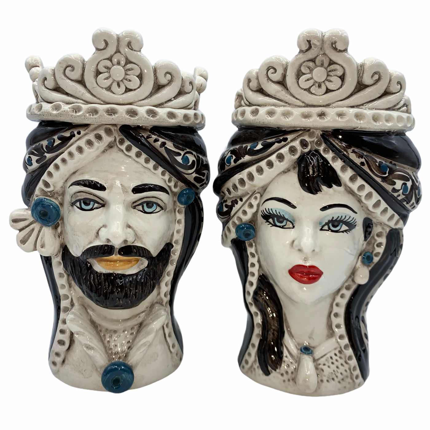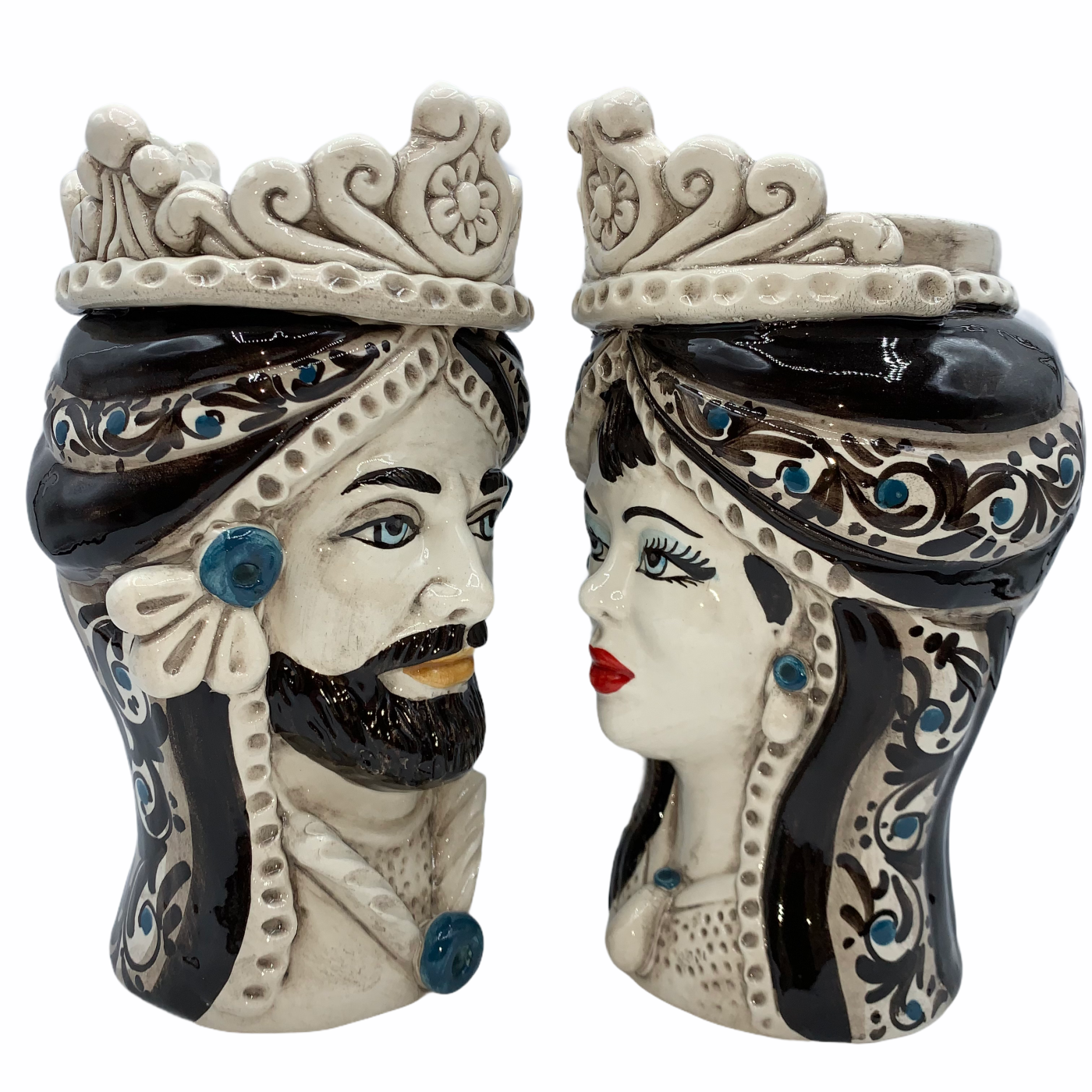 Moro huvud i fin keramik av Caltagirone helt bakad och hand dekorerad. Modell "The Normans" Height cm 20. De var handgjorda av en mästare hantverkare av Caltagirone som har tagit hand om varje detalj för att göra det, vilket tydligt framgår av bilderna, ett verkligt unikt föremål för kalabriansk konst.