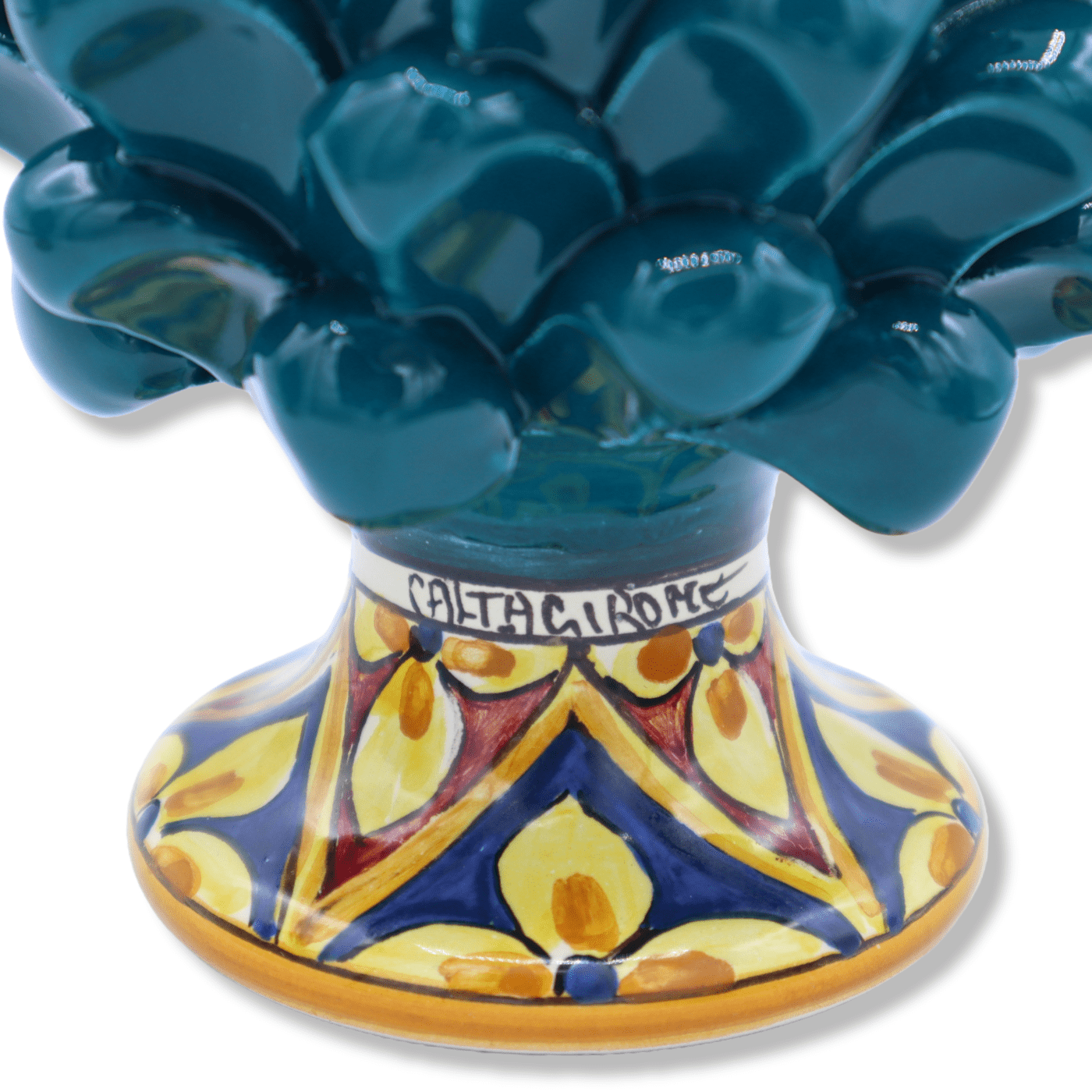 Siciliansk Pigna i fin keramik av Caltagirone helt tillverkade och dekorerade noggrant för hand av våra mästare hantverkare.